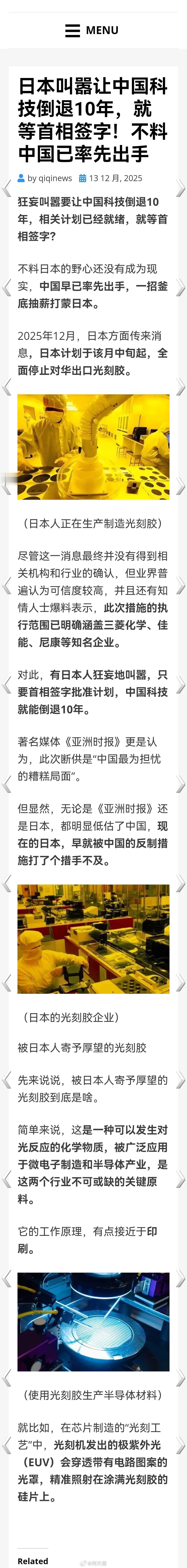 日本叫嚣让中国科技倒退10年,就等首相签字!不料中国已率先出手!海外新鲜事何天恩