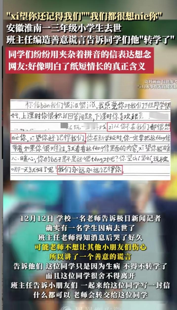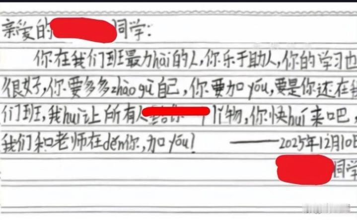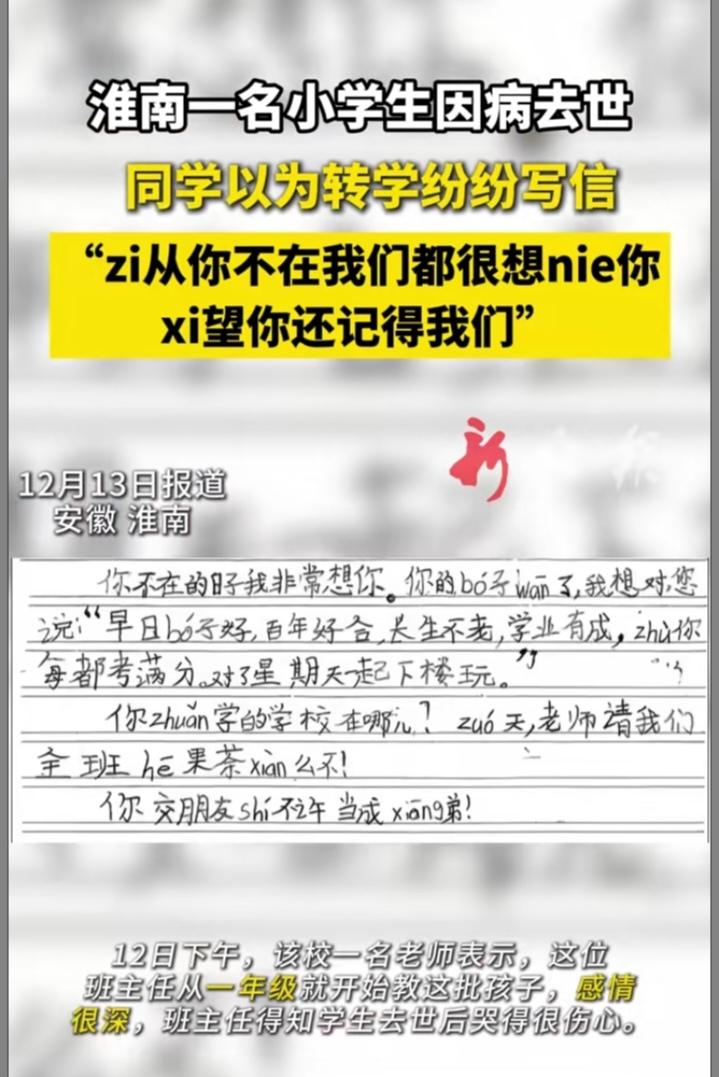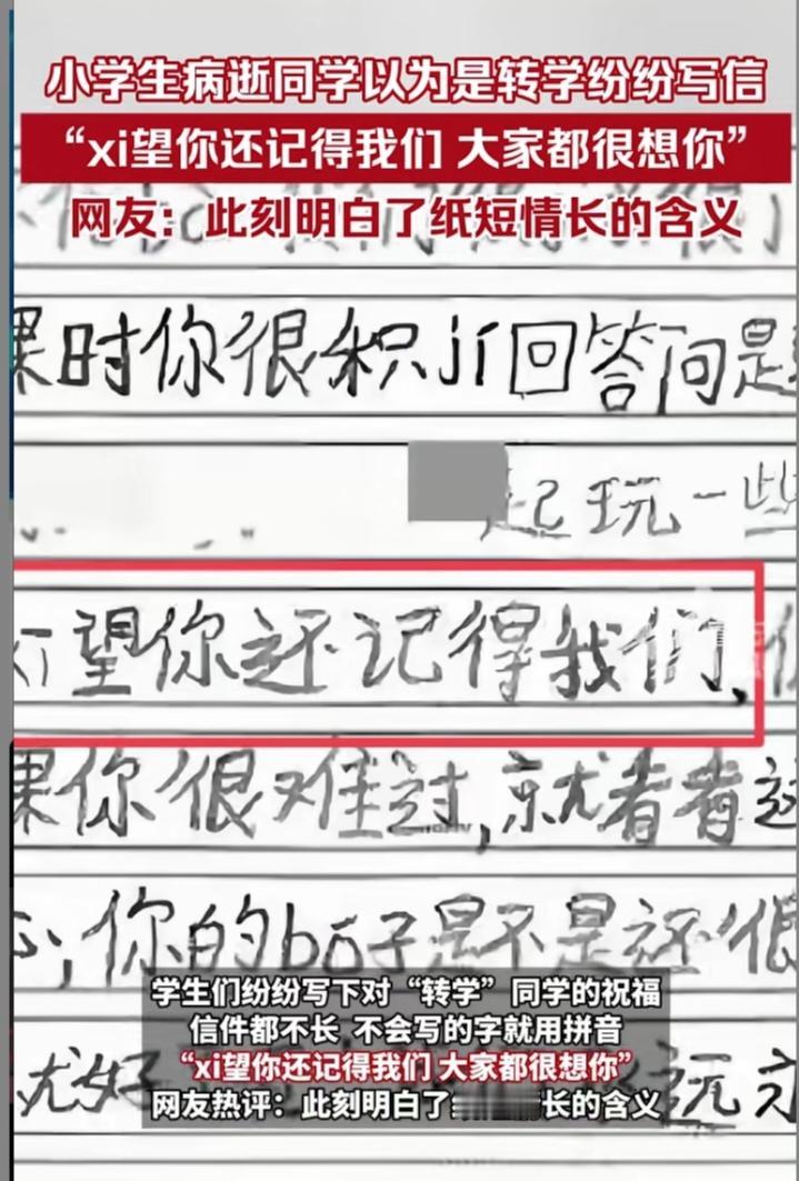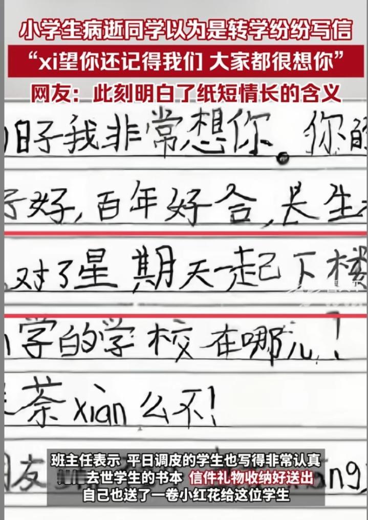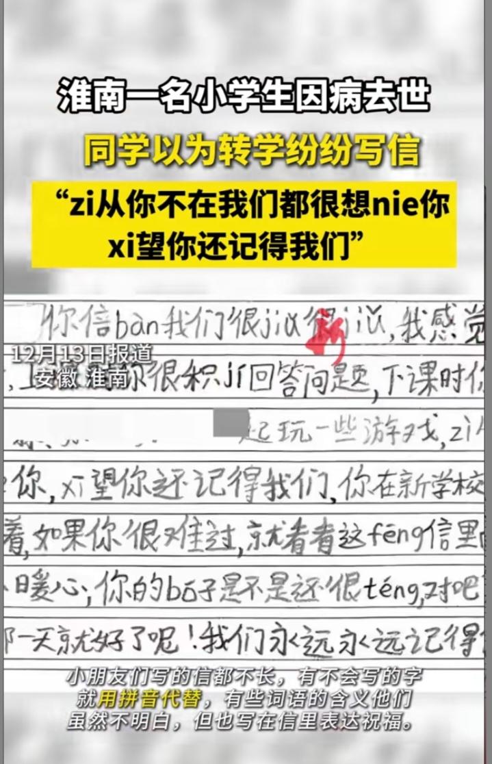 安徽淮南:一封封拼音信,藏着孩童最澄澈的思念 安徽淮南一间洒满阳光的三年级教室,没有喧闹的追逐打闹,只听得见笔尖划过纸张的沙沙声。讲台上,老师红着眼眶轻声说:“咱们的小伙伴要转学去很远的地方啦,大家给他写封信,好不好?”没人知道,那个总爱咧嘴笑、跑步时会把衣角甩得老高的男孩,再也不会回到这个教室了。 孩子们的小脑袋埋在作业本上,眉头皱成了小疙瘩,认真得不像话。他们握着铅笔,一笔一画地拼凑着还不太熟练的文字,拼音和汉字歪歪扭扭地挤在纸页上。“Nihaoma?”稚嫩的笔迹后,跟着一个歪歪扭扭的笑脸;“Bozihaitengbuteng?”谁也没忘,上周男孩摔破膝盖时,哭唧唧喊疼的模样;“Wotebiexiangni”的末尾,还晕开了一小团水渍,不知是谁的眼泪不小心落了上去。 有人偷偷往信封里塞了块草莓味的橡皮,那是男孩念叨了好久的款式;有人放进一张画着奥特曼的小卡片,说要送给他当“护身符”;还有人折了只歪歪扭扭的纸飞机,说能带着信飞到很远的地方。孩子们围在讲台边,踮着脚尖把信封摞得高高的,叽叽喳喳地叮嘱老师:“一定要让他收到呀!”“告诉他,我们等他回来一起跳皮筋!” 这些满是童真的信件被传到网上,瞬间戳中了无数网友的泪点。“看不得这种,孩子们的世界太干净了”“拼音错了没关系,这份想念一点没差”,一条高赞评论写道:“这封信太短了,可它装下的感情,比我们一辈子说得都多。” 在这个习惯了用华丽辞藻包装情绪的时代,孩童的真挚最是动人。他们不懂生离死别的沉重,只知道想念一个人,就要把心里的话一笔一画写下来。这份不含杂质的情谊,不仅是童年最珍贵的宝藏,更让成年人读懂:最能触动人心的,从来都是赤诚与纯粹。 你有没有被孩子们的纯真瞬间打动过?欢迎您在评论区分享你的故事!谢谢!小学看图写拼音 汉语拼音默写本