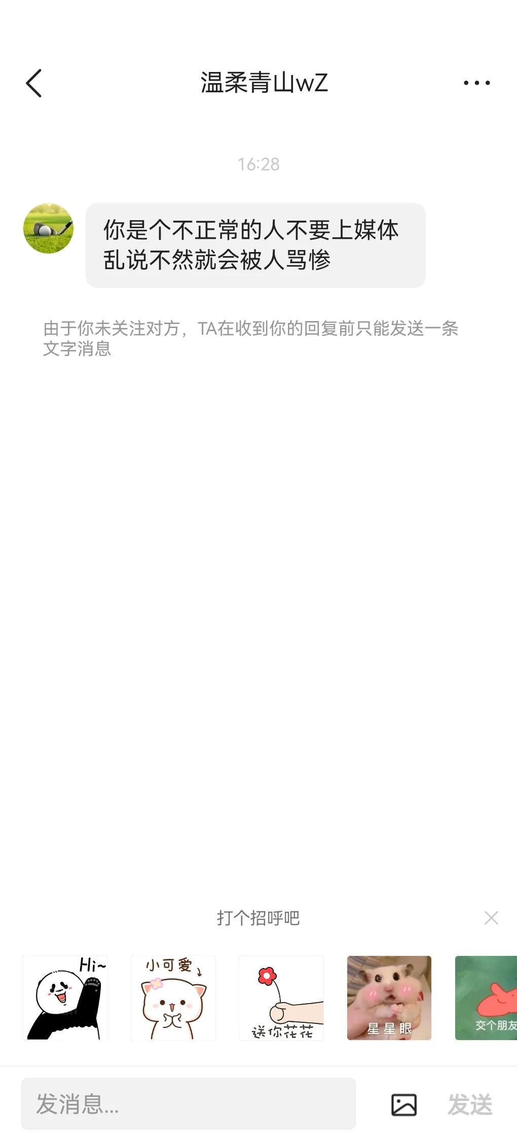 一个陌生人私信给我,说一些莫名其妙的话,这个人好奇怪,从来没有遇到过这种人,这是在网络上找存在感吗。 跟这种人不想浪费口舌之快, 直接给他拉黑了。
