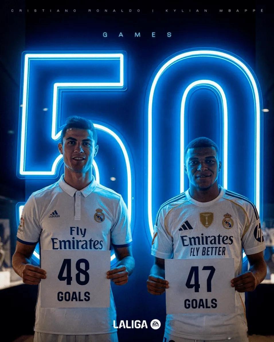 根据西甲联赛官方的统计,姆巴佩在西甲生涯前50场比赛里,已经打进了47球。这项纪录在赛事历史中仅次于同期打进48球的C罗。