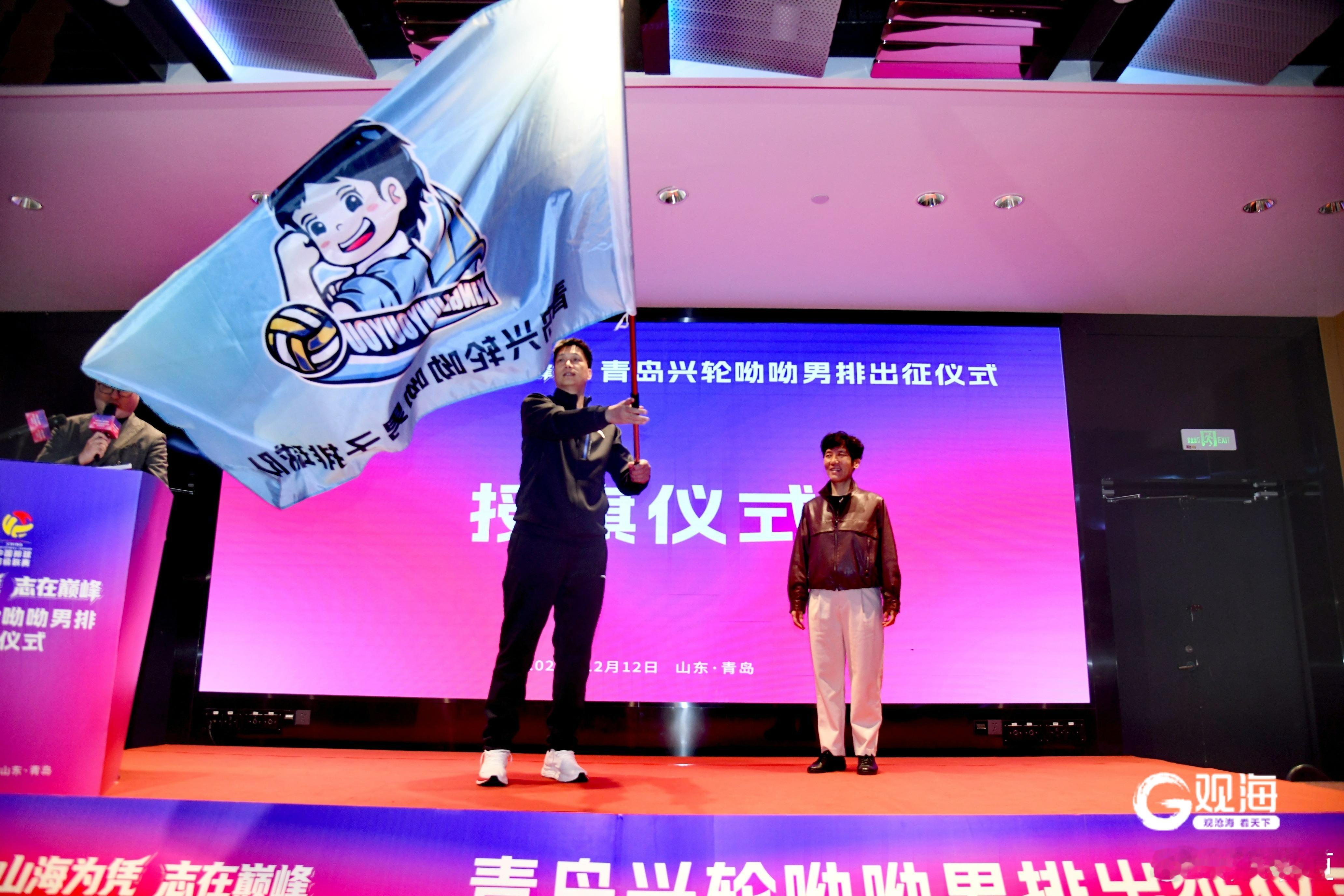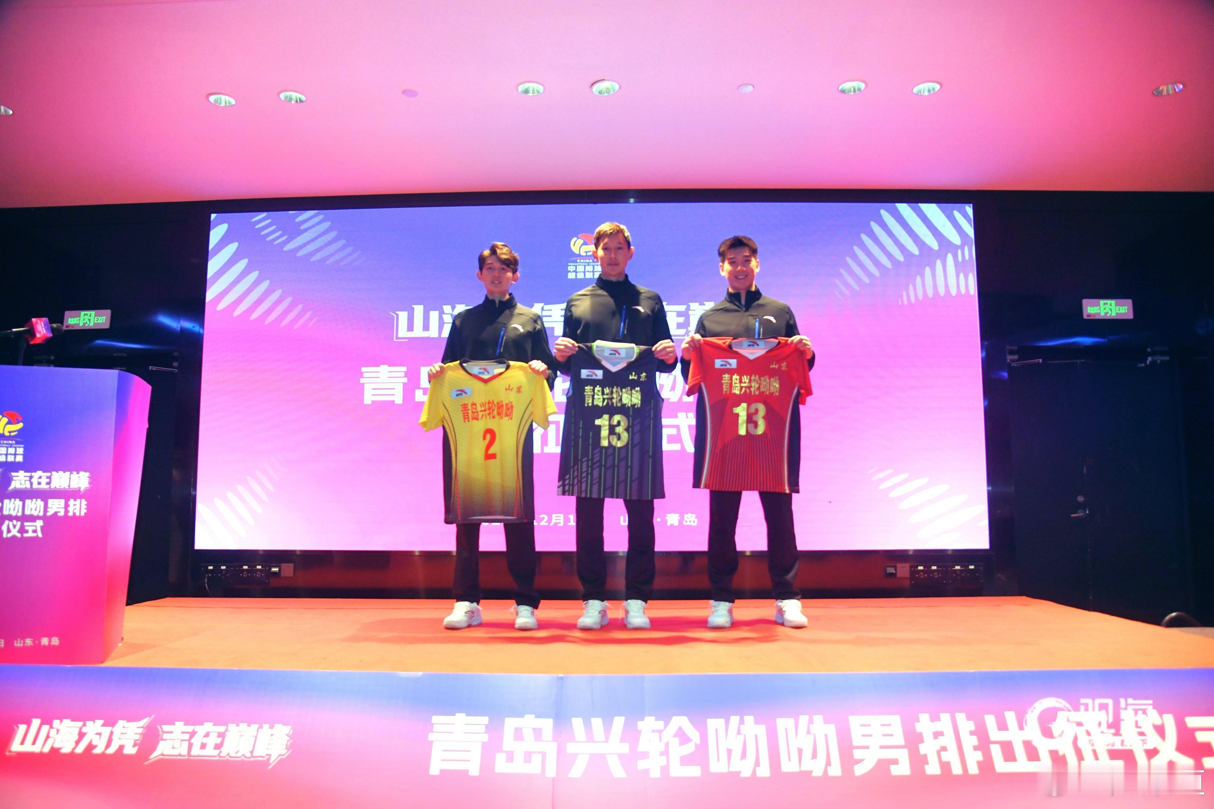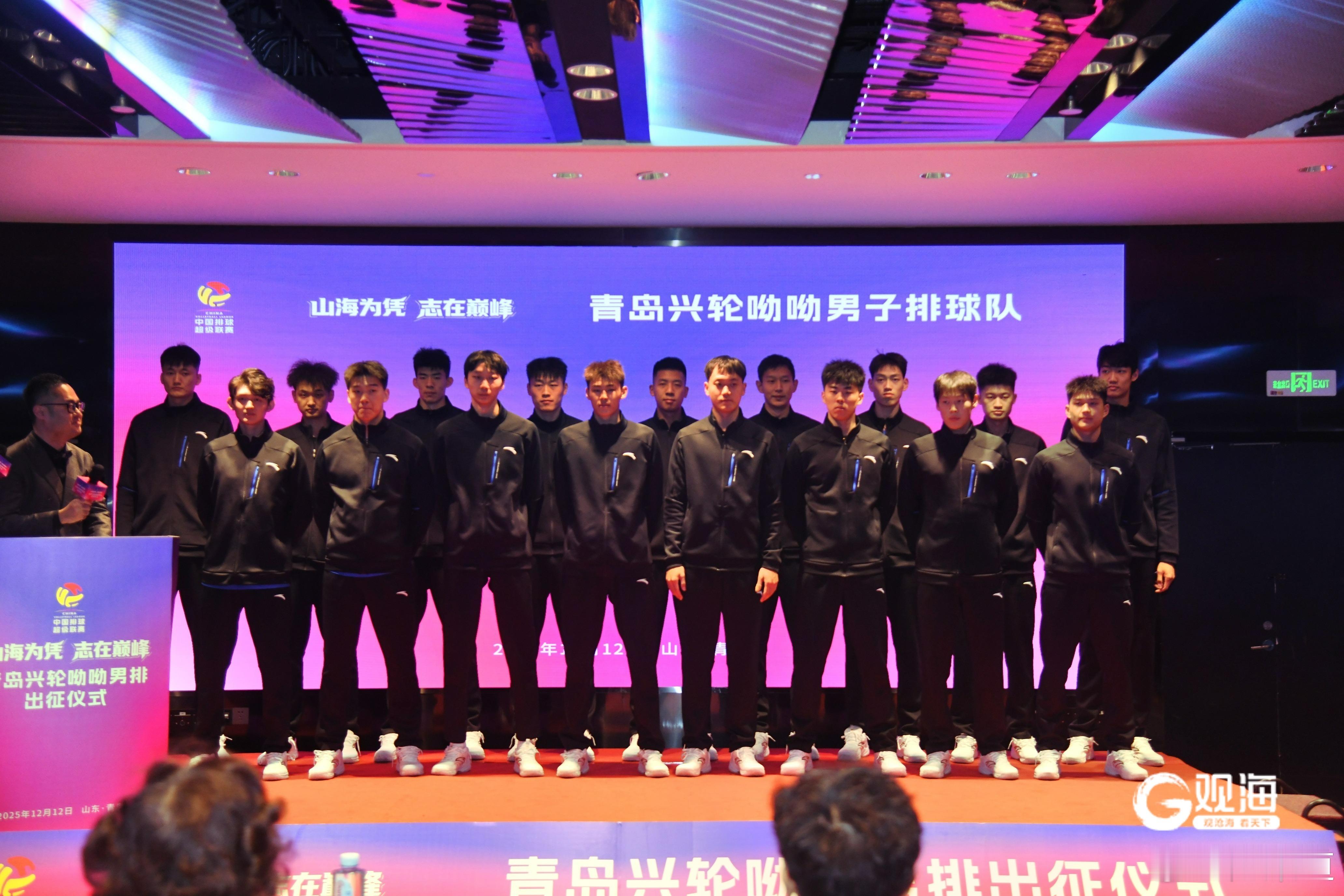 排超联赛2025-2026中国排球超级联赛昨天下午,青岛兴轮呦呦男子排球队进行了新赛季出征仪式 青岛兴轮呦呦男子排球队出征2025-2026中国排球超级联赛仪式,在青岛国信体育中心酒店隆重举行。青岛市委副书记、统战部部长张惠,青岛市人大常委会副主任栾新,青岛市政协副主席薄涛等领导出席活动。仪式上,青岛兴轮呦呦男子排球队全体队员整齐亮相,运动员代表王径一、翟德军、范宣玉展示了全新设计的比赛服。球衣融合青岛山海元素与球队标识,象征着荣誉与使命的交融。市政府办公厅副主任慕建光在致辞中充分肯定了球队近年来取得的进步。山东省排球运动管理中心党总支书记、主任王西国寄语球队,要发扬山东排球敢打敢拼的优良传统,在全国赛场上展现齐鲁健儿的风采。青岛籍队员李磊代表全队发言中表示,全队将以最饱满的热情、最顽强的斗志,迎接每一场比赛,为青岛而战,为山东争光。山东省体育局局长乔云萍向主教练张启勇授队旗,青岛兴轮呦呦男排正式拉开了新赛季的战幕。按照赛程,14日晚,他们将坐镇青岛大学体育馆迎来赛季首个对手浙江队。(青岛日报/观海新闻记者 许诺/文 王雷/图) 王径一