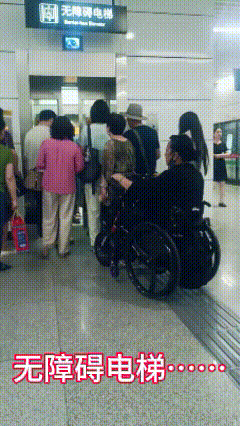 “无障碍电梯”…… 什么都要抢!明明每个人都会上去的,还是要抢那一秒钟…… 里面的人还没出来就往里挤,哪管坐轮椅的人! 我还以为绿衣大妈看到了会帮一把,谁知道她自己也上去了…… 是不是“无障碍”几个字写得太含蓄了?还是真的看不懂? 有些人根本就不会感同身受! 这个电梯不是不可以乘坐,总要有点谦让吧? 您说呢? 随手拍张照