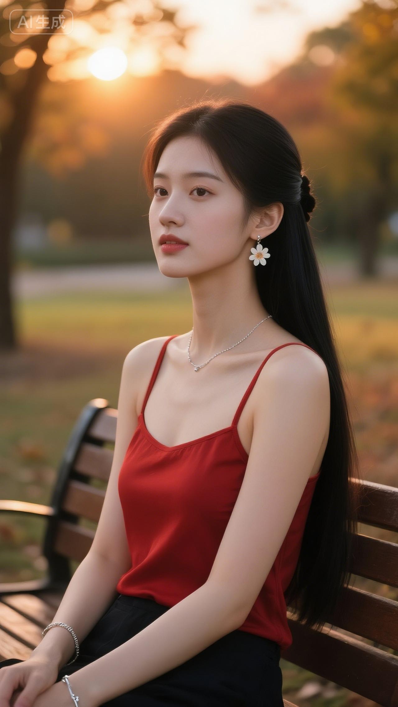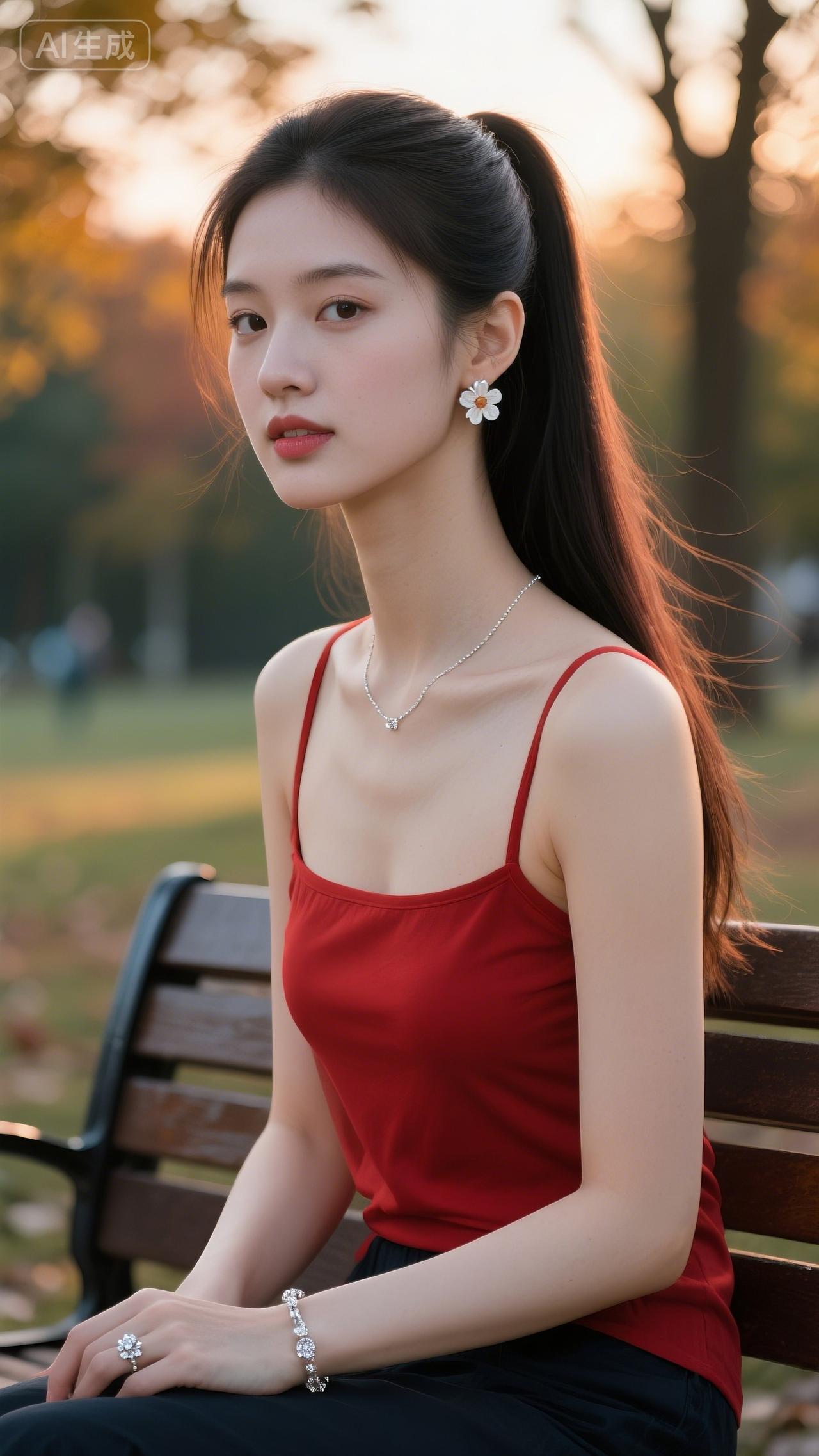 落日裹着金风,红吊带衬得笑眼更亮,马尾轻扬时,连耳上小花都浸了晚霞的甜。 秋日甜系穿搭