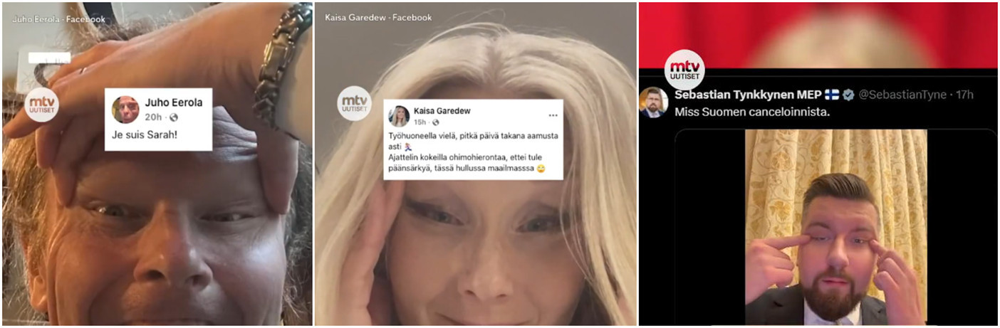 【#芬兰选美小姐涉嫌歧视中国人# ,被剥夺头衔】近日,因为前“芬兰小姐”莎拉·扎夫斯(Sarah Dzafce),芬兰全国吵作一团。据芬兰广播公司(YLE)消息,数日前,扎夫斯在社交媒体平台发布一张自拍照。照片中,扎夫斯用两根手指拉扯着眼睛,还配文“我们去吃中餐吧”。尽管扎夫斯随后辩解自己是因为“剧烈头痛”揉眼睛,但这一明显涉嫌种族歧视的举动,在社交媒体引起轩然大波。许多网民谴责这位刚在9月份摘得“芬兰小姐”桂冠的女士“德不配位”。随着舆论发酵,当地时间12月11日,“芬兰小姐”组织方召开发布会,宣布剥夺扎夫斯“芬兰小姐”头衔,并将之传给亚军选手。该组织表达诚挚的歉意,表示绝不接受任何形式的种族主义或歧视行为,并强调其运营始终遵循尊重、平等、问责和维护人类尊严的原则。发布会上,扎夫斯称:“对于被我在社交媒体上的行为冒犯和伤害到的所有人,我深感抱歉。”但YLE称,扎夫斯并未具体说明自己是在为哪项具体行为道歉。许多网民认为,这样的道歉不够真诚,因为她只是为造成的伤害道歉,而非为行为本身道歉。很多人以为此事件将到此结束。但令人愤怒的是,多名芬兰政客竟趁机搅浑水。据报道,右翼民粹主义政党“芬兰人党”议员尤霍·埃罗拉(Juho Eerola)、凯莎·加雷德(Kaisa Garedew)以及该党欧洲议会议员塞巴斯蒂安·廷基宁(Sebastian Tynkkynen)跳出来哗众取宠。他们三人均在社交媒体上声援扎夫斯,发布类似涉嫌种族歧视的自拍照。更过分的是,此类小丑行径得到了很多政客的支持,其中就包括芬兰人党领袖亚尼·麦凯莱(Jani Mäkelä)。麦凯莱颠倒黑白,竟将扎夫斯被剥夺桂冠一事描述成“重大的社会不公”。当地时间12日,处于舆论中心的扎夫斯再次出面回应。她竟告诉YLE,在她被剥夺桂冠后,“我收到了来自芬兰各地人们的大量支持、信息和帮助,这真的非常令人感动,我觉得自己并不孤单”。与此同时,“芬兰人党”成员的做法,引起了芬兰媒体和其他政党的强烈不满。“这是一种不负责任、幼稚、愚蠢的行为,”芬兰执政联盟中的“瑞典族人民党”主席安德斯·阿德勒克鲁茨指出,“很明显,这种做法会冒犯民众。”该党议会党团主席奥托·安德森也说,此事件令人遗憾。“给人的印象是,他们想再次引起人们对自己政党的关注,目的可能是将民众注意力从其他问题上转移开。”芬兰总统斯图布所在的“民族联合党”也向“芬兰人党”三政客提出批评。“幼稚且不恰当,”该党议会党团副主席皮娅·考玛称,此事件或在下周议会党团主席会议上展开讨论。“政客们用种族主义玩梗还四处散播,已经让该党的基层工作人员感到厌倦,”YLE在12日刊文批评称,在涉嫌种族歧视方面,“芬兰人党”已前科累累,现在又借“芬兰小姐”一事肆意玩梗娱乐严肃的种族主义议题,全然不顾许多移民和外籍人士的感受。文章称,如今,在芬兰出生或移居芬兰的外籍人士每天都会遭受种族歧视和欺凌。与此同时,芬兰也渴望吸引成千上万的技能人才来到这里工作,以拯救芬兰经济。“但令人遗憾的是,身居高位的政客们将讨论降至如此低劣的水平。”文章写道。