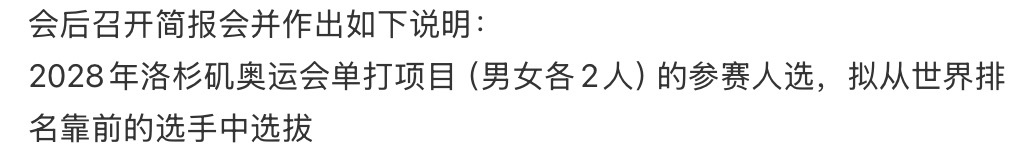5319避让❗️洛奥单打名额方案拟出世排前二两人上单打,同东京及以前周期
