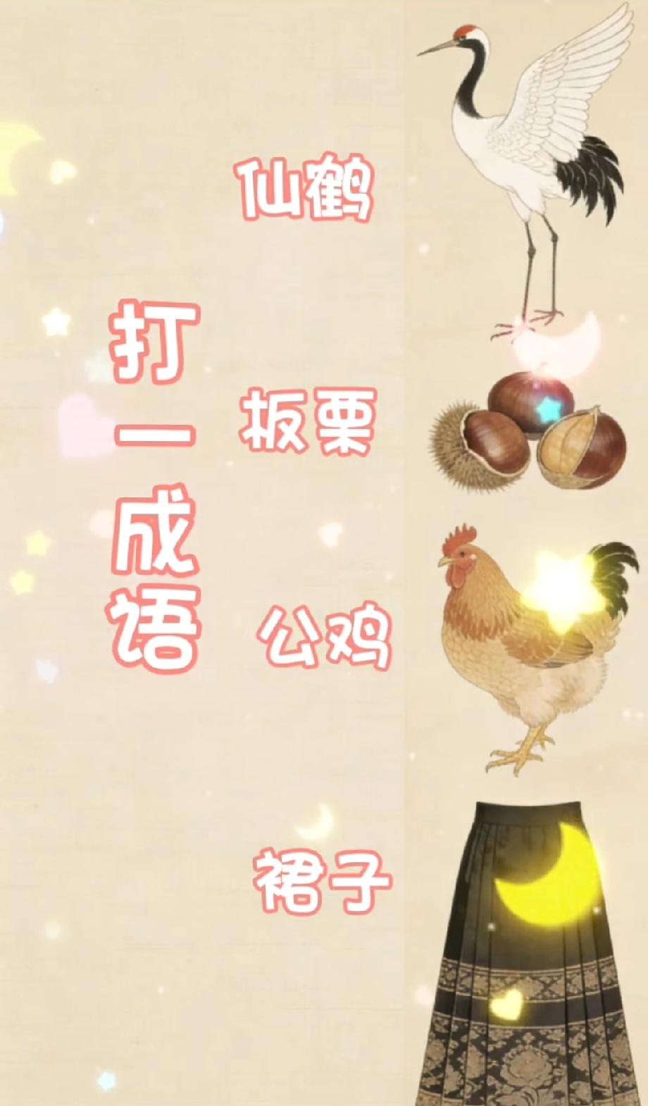 服了!全网都在猜的成语谜题,仙鹤板栗公鸡裙子到底是啥?