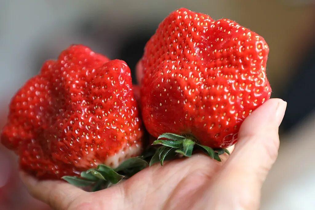 比如,社交媒体上有帖子说,“那些个大的草莓其实是打了膨大剂的”“12月是草莓‘科技与狠活’最多的时候”;还有的说“草莓塌房了,居然是农残率最高的水果”“畸形果是打了激素”……这些说法传得有模有样,真的靠谱吗?市面上鸡蛋大小的草莓又是怎么来的?