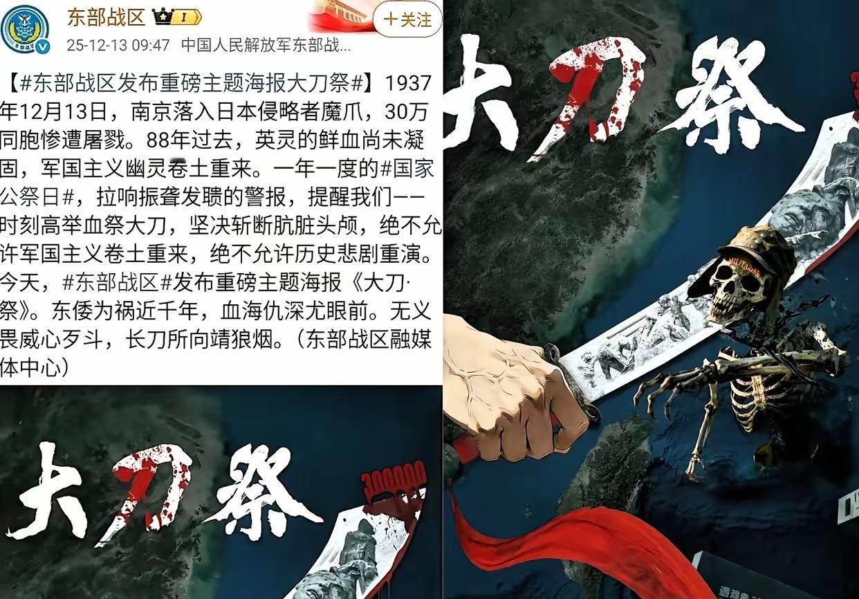 东部战区这张图真的太戳心了!一把闪着冷冽寒光的大刀,配文里的“大刀祭”三个字,矛头直接对准了日本军国主义。88年前的今天,南京城就这么失守了,30万手无寸铁的同胞永远留在了那个飘着雪的冬天,这笔血债,我们一天都没忘。 图里藏着的意思特别清楚:面对那些心怀不轨的“豺狼”,亮出刀刃,才是最有力的回答。想当年我们没足够的力量保护自己,只能眼睁睁看着苦难发生;现在咱们国家实力越来越强,腰杆挺得笔直,那些想搞小动作的人,还敢轻举妄动吗? 总有人说要“大度”要“往前看”,可历史这道伤疤,怎么能说忘就忘呢?这把刀啊,不只是为了纪念过去的苦难,更是给未来提了个醒。咱们中国早就不是那个任人欺负、想怎么宰割就怎么宰割的软柿子了,真正挺直了腰杆站起来了。 盯着屏幕上这把刀,心里又激动又五味杂陈。今天的和平真的来之不易,是无数先烈拿命换来的安稳日子。我们纪念历史,不是要揪着过去的仇怨不放,是想让那些不该发生的悲剧,再也别在我们身上上演。 你从这张图里看明白了吗?它其实在告诉我们:和平不是别人给的,得靠自己手里的实力去守住;而尊严,也得靠自己挣回来。铭记历史,不是为了沉湎过去,而是为了更好地走向未来。那你觉得,这把刀里藏着的,还有哪些让我们必须铭记的力量? -search.byteimg.com/img/labis/c564db63dea46b60c9c08f4d4517f58e~480x480.JPEG