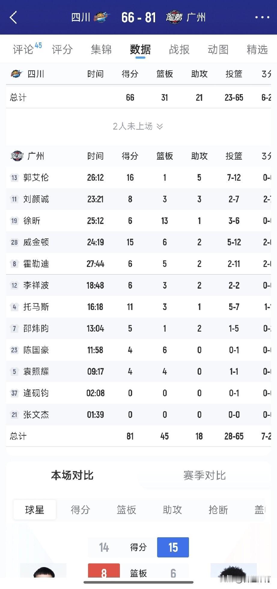 霍勒迪确定打过NBA?我怎么感觉他的实力和广东队之前的外援阿姆斯差不多,都是在广州三元里找的吧? 在代表广州队出战CBA的第一场比赛,面对到全华班出战的弱旅四川队,不打出好的表现就算了,还打的非常差。 全场比赛出场27分44秒,11投2中,仅拿到6分,但却可以送出6次失误。 他在场上的表现,和广东球迷的噩梦阿姆斯,简直不相上下,外线没篮,冲击篮下也是各种不进,还经常黄油手,出现低级失误,传球也是总往观众席传。 这水平,如果不知道他以前打过NBA,我真的会认为他是广州队在三元里随便找的,真的是太菜了。