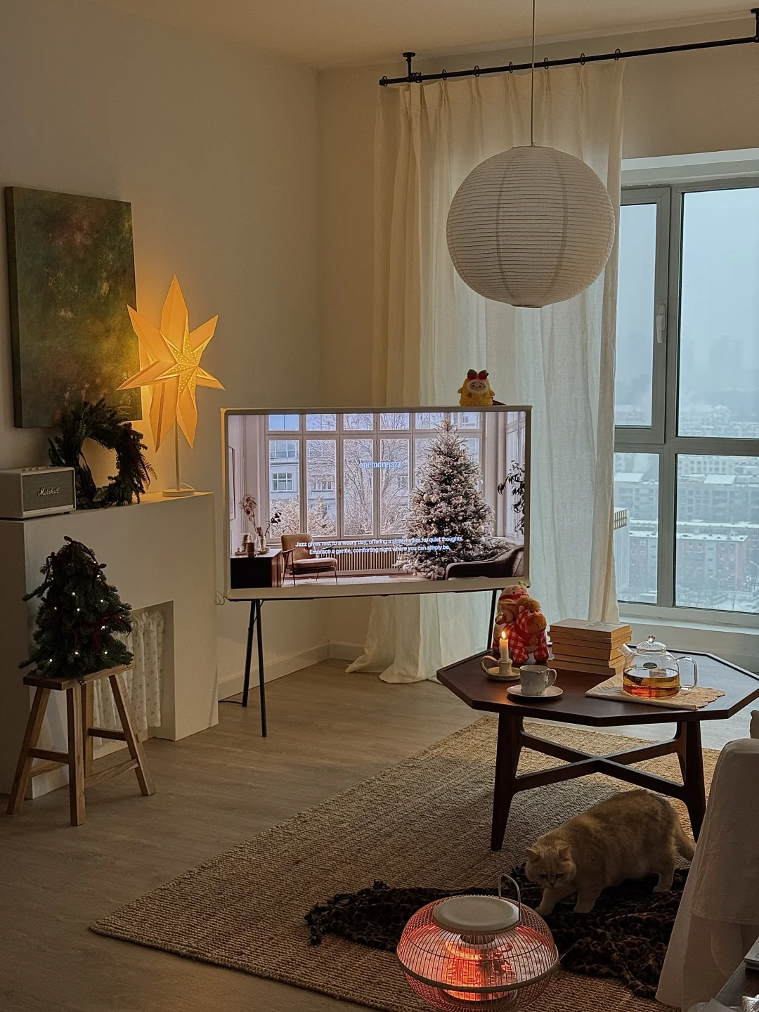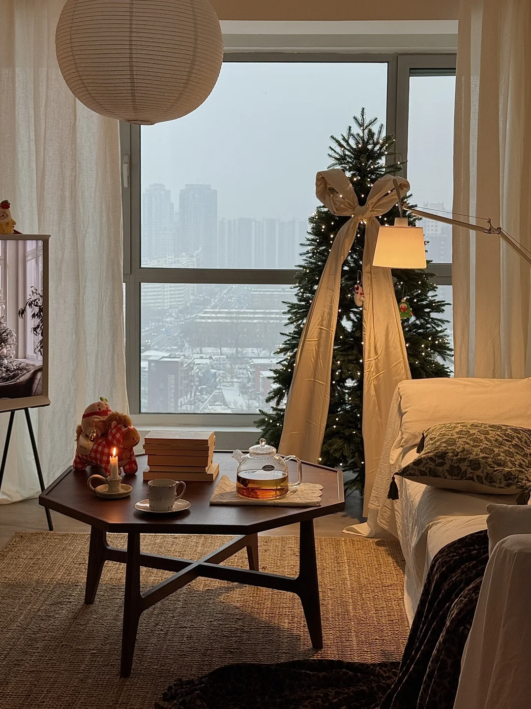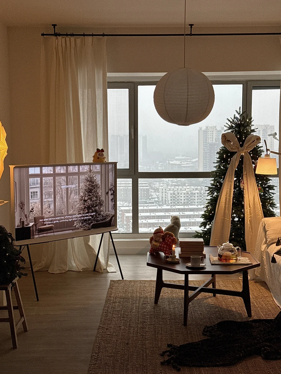 北京初雪❄️在客厅里温暖地赏雪🎄
