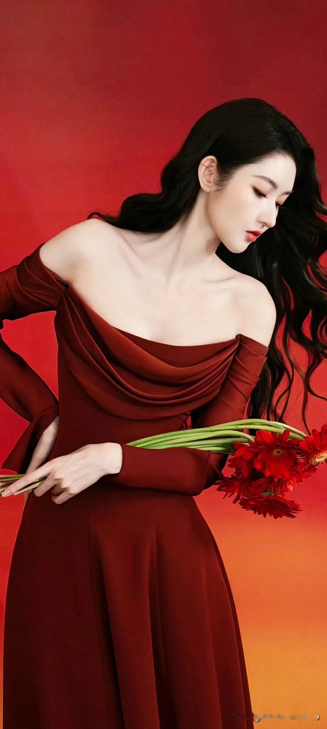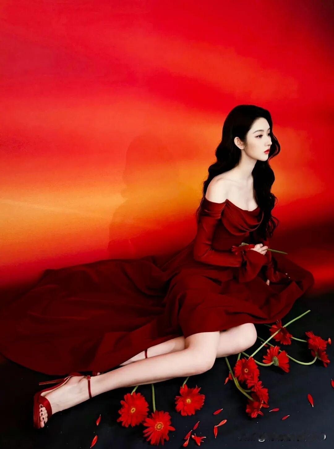 王玉雯红色长裙尽显魅力