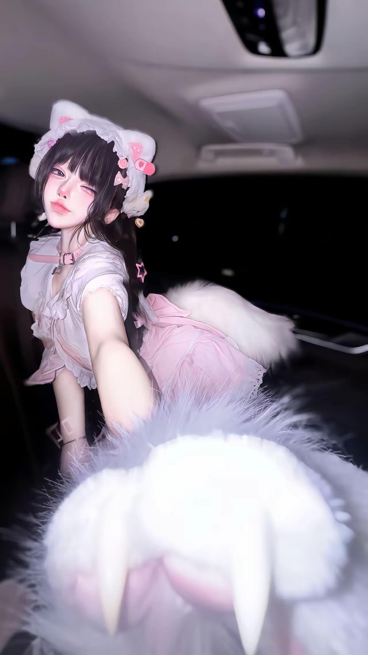 可爱兔女郎,车内俏皮自拍🐰💕白丝[话题]