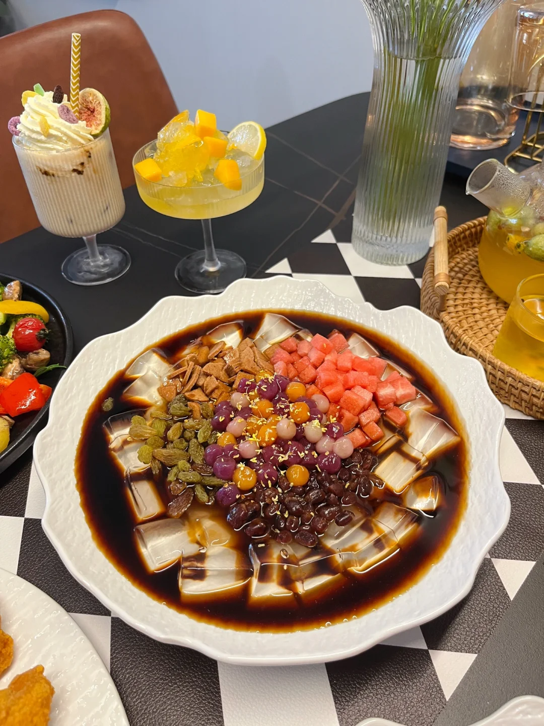 饮品:雪顶咖啡,芒果碎碎冰,果茶