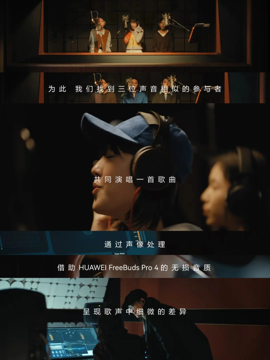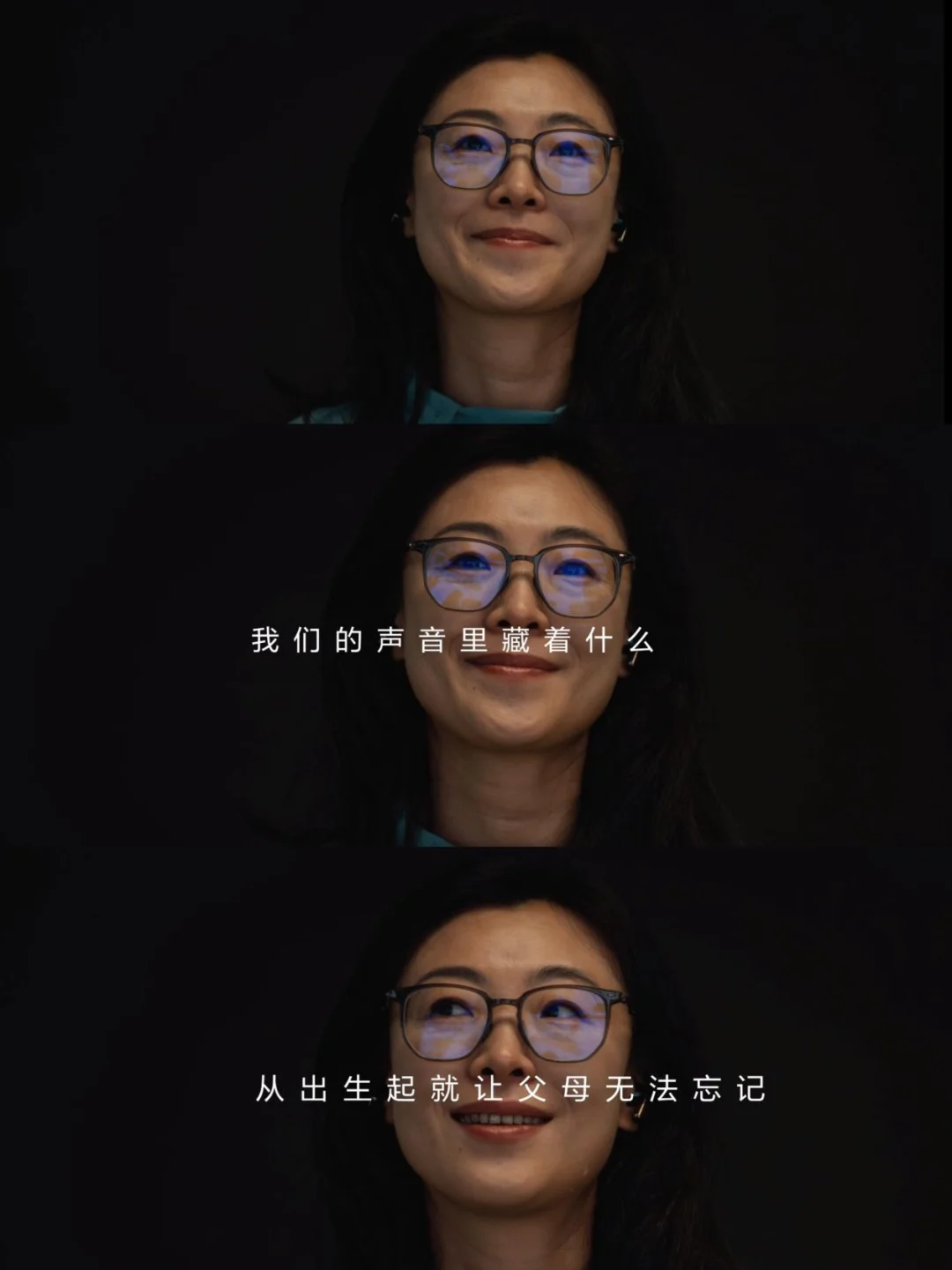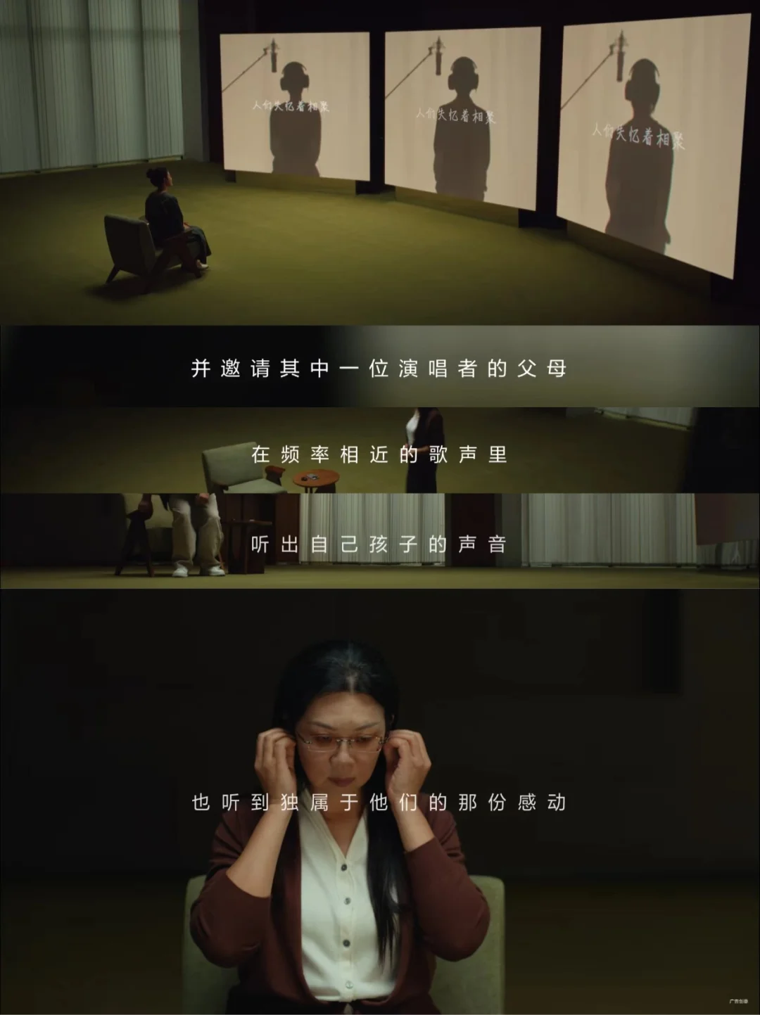 🔵《我记得》这支短片,邀请三位声音极为相似的参与者共同演绎亲情歌曲《我记得》,通过特殊的声相处理技术,将他们的声音巧妙地分别安置在左、中、右三个方位,营造出独特的听觉空间感。演唱者的母亲“听音识人”,在极易混淆的声音中,精准捕捉到自己孩子的声音。