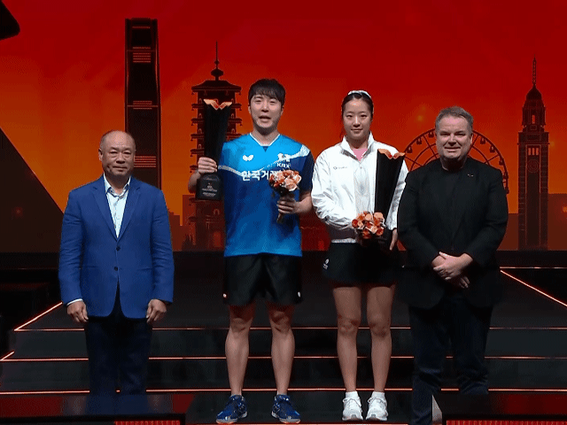 2025WTT香港总决赛 混双颁奖仪式的颁奖嘉宾是张怡宁和李宁💐