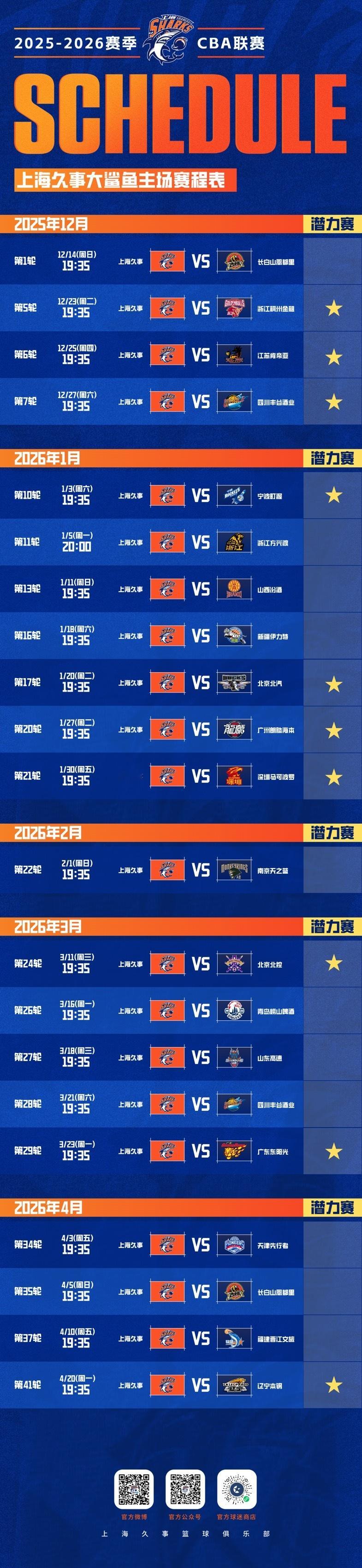 上海男篮今年主场的10场潜力赛赛程如图⬇️客场还有9场,分别是12.16vs同曦、12.21vs广厦、1.7vs青岛、1.23vs福建、3.25vs山西、3.27vs天津、3.31vs吉林、4.17vs新疆、4.24vs山东。上海久事大鲨鱼如何评价CBA潜力赛