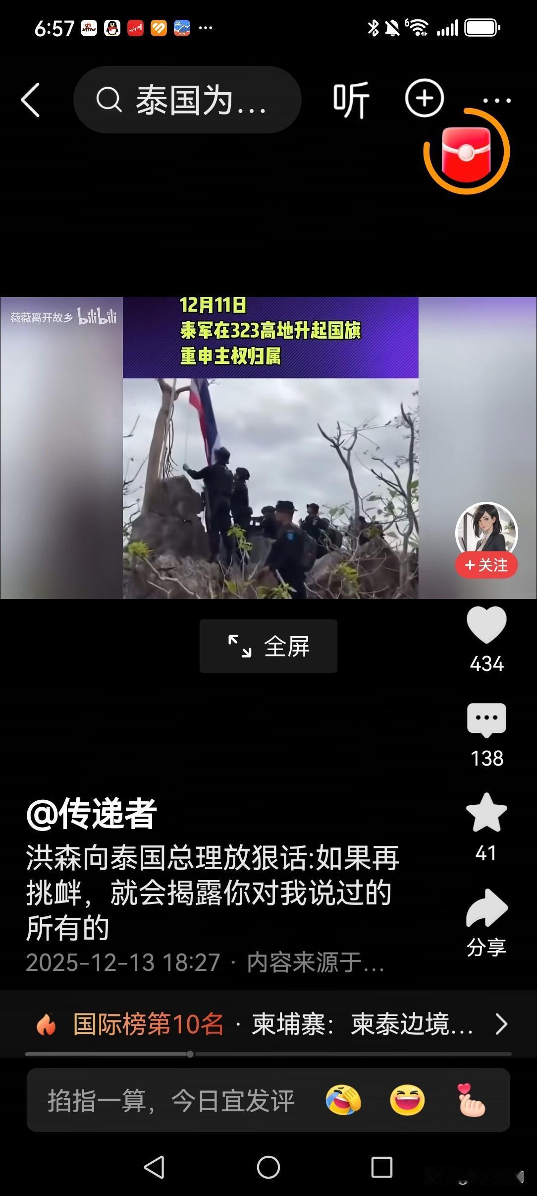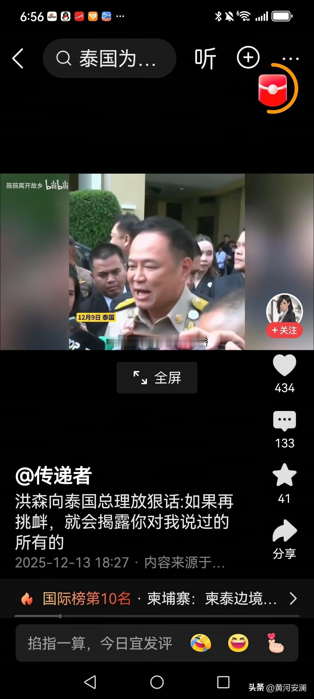 洪森放出的狠话着实看点十足!倘若泰国总理阿努廷依旧挑衅,洪森便要将两人的对话公之于众,这恰似手握“秘密武器”。在外交场合中,诸多话语皆为私下交流,一旦曝光,阿努廷极有可能陷入舆论的漩涡之中。由此也能看出洪森的强硬态度,他可不是好欺负的。外交宛如一场没有硝烟的战争,每一个举动都可能左右两国关系的走向。阿努廷若识趣,想必会有所收敛,不然等对话传开,可有他头疼的了。