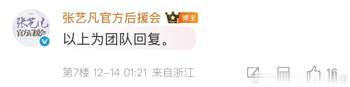 张艺凡官方后援会发声明辟谣:艺人目前单身
