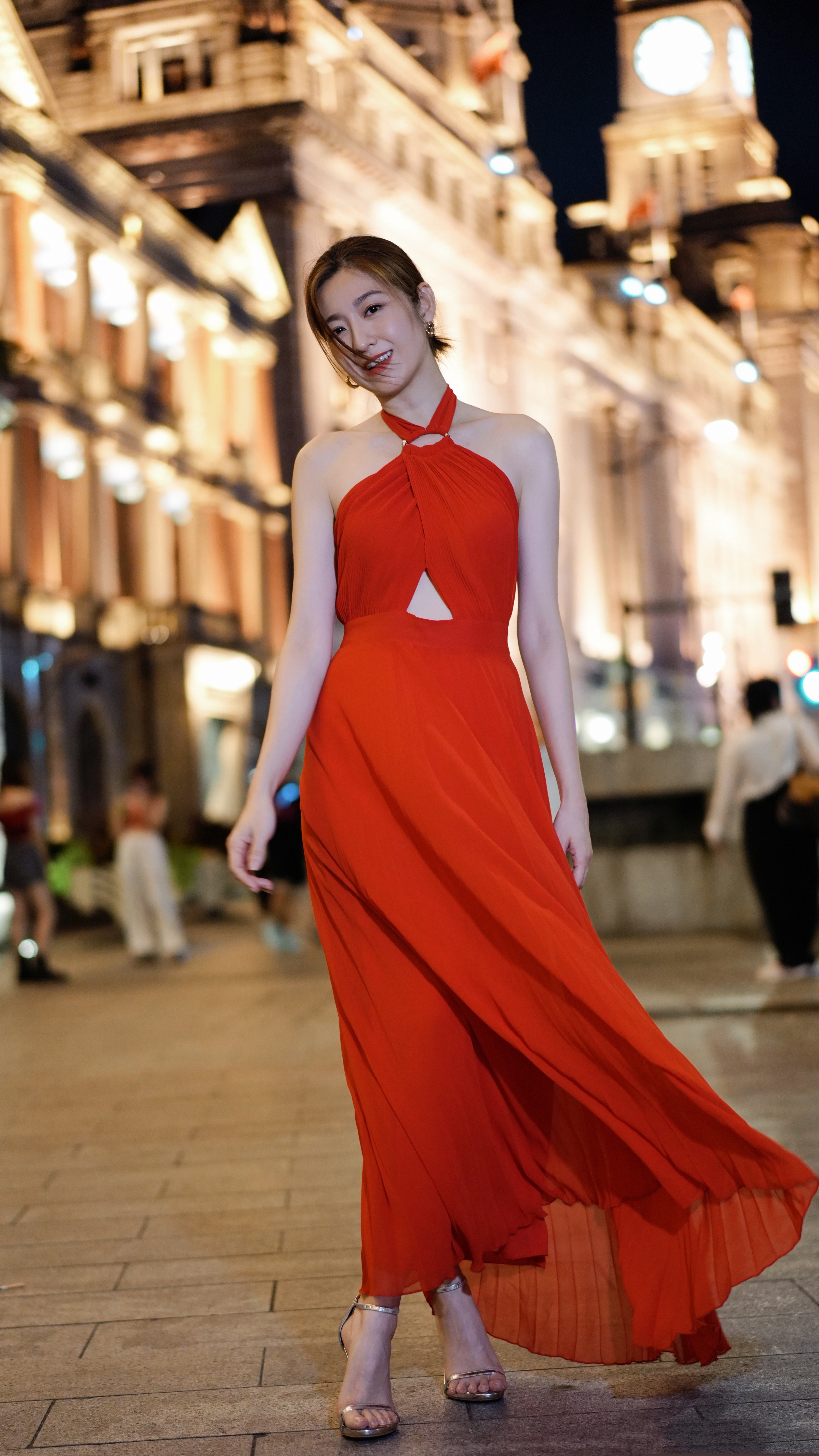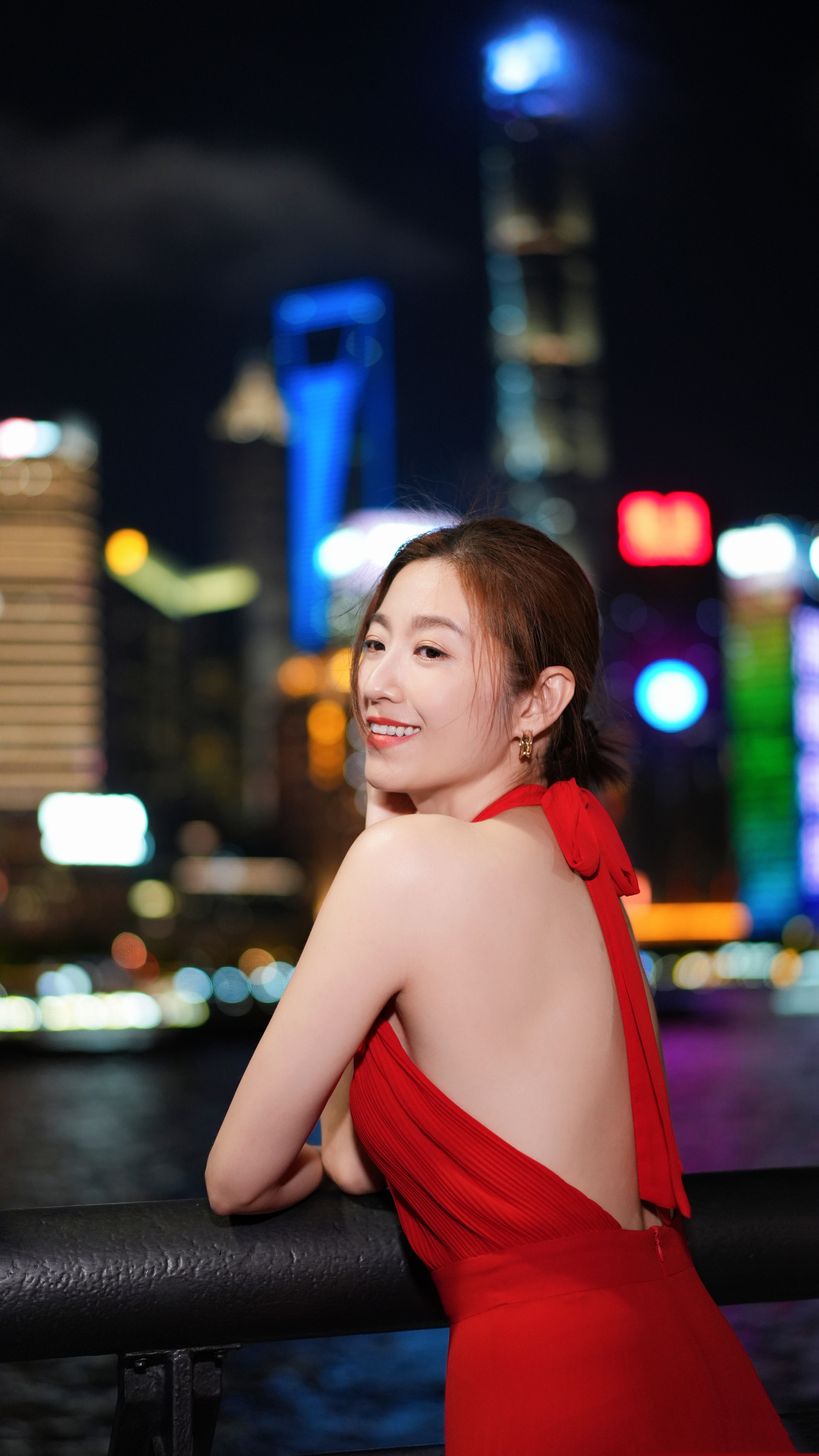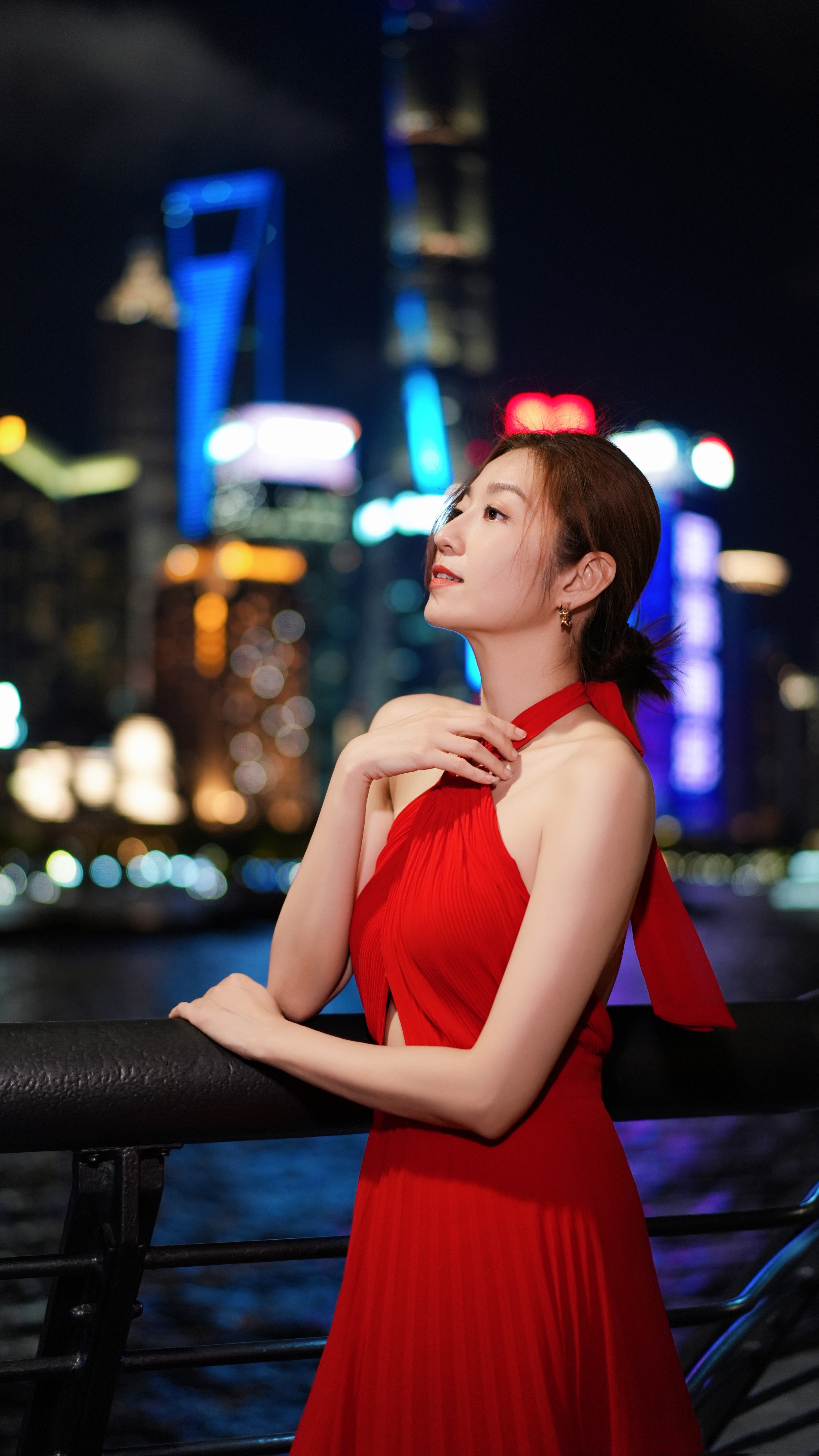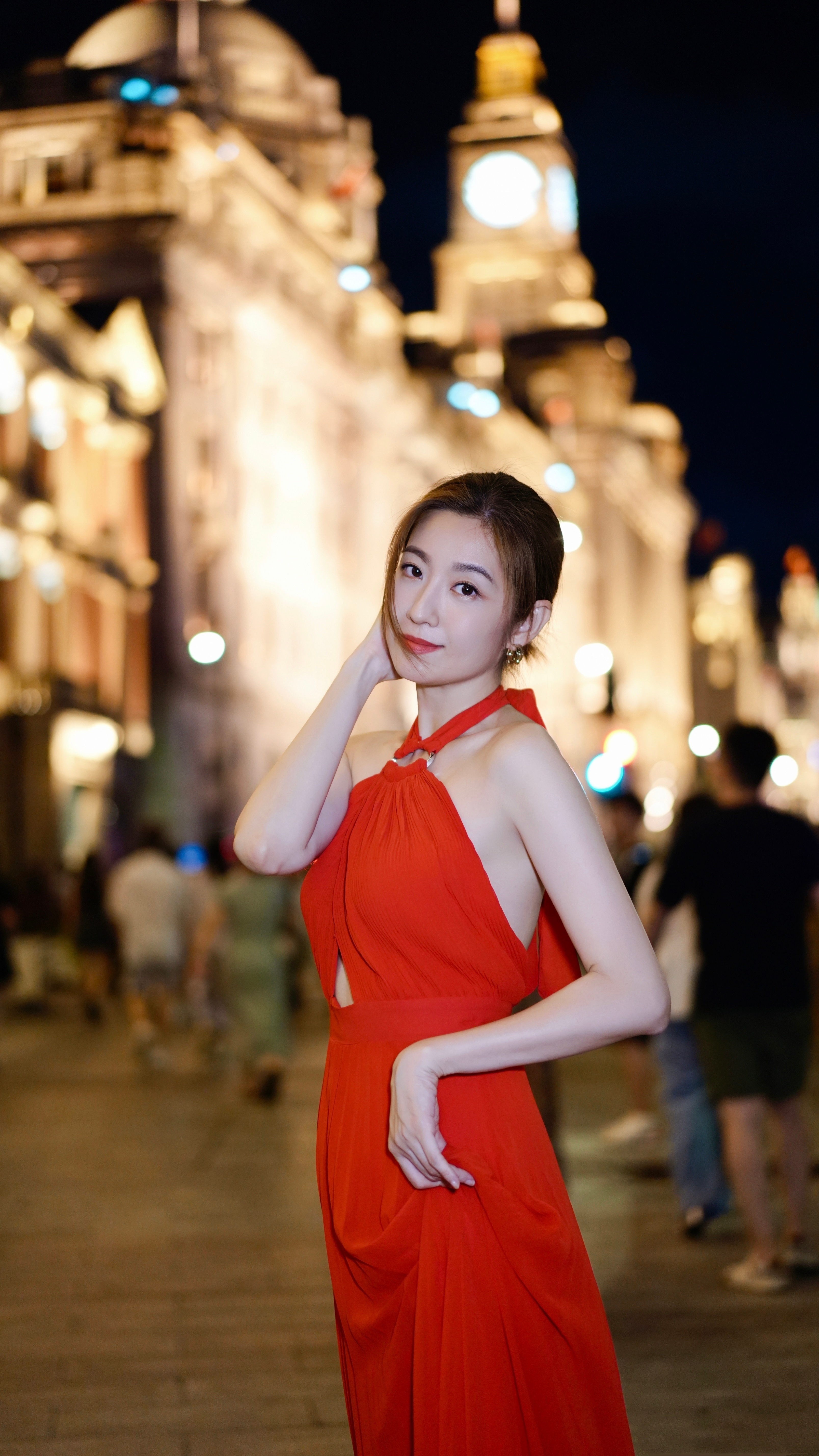 陈自瑶,夜上海外滩红裙大片,回眸一笑百媚生。陈自瑶