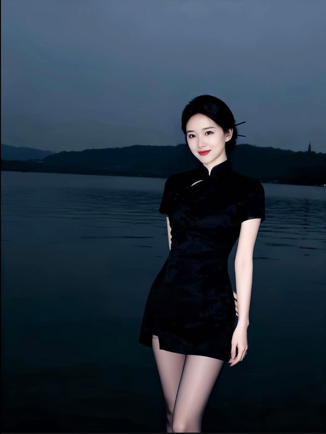 古风美人,黑纱长裙,花髻相伴,静坐庭院,悠然自得。