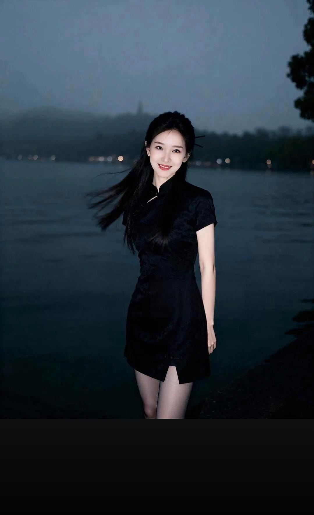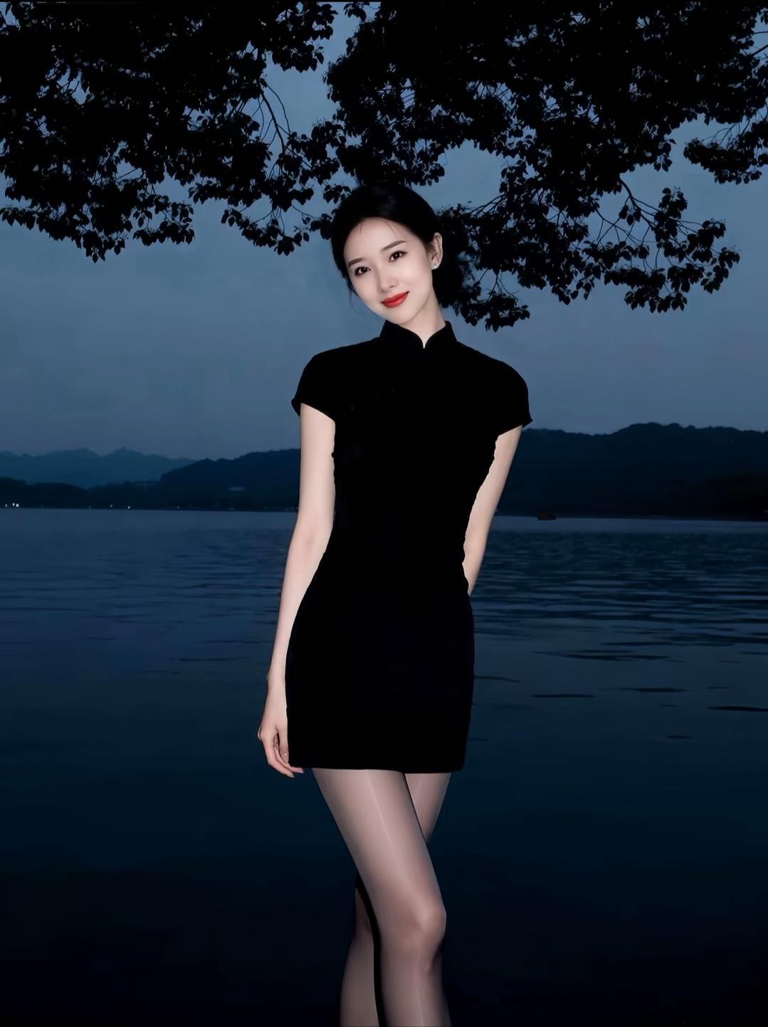 草原上的时尚女郎,黑裙白衣,优雅动人。