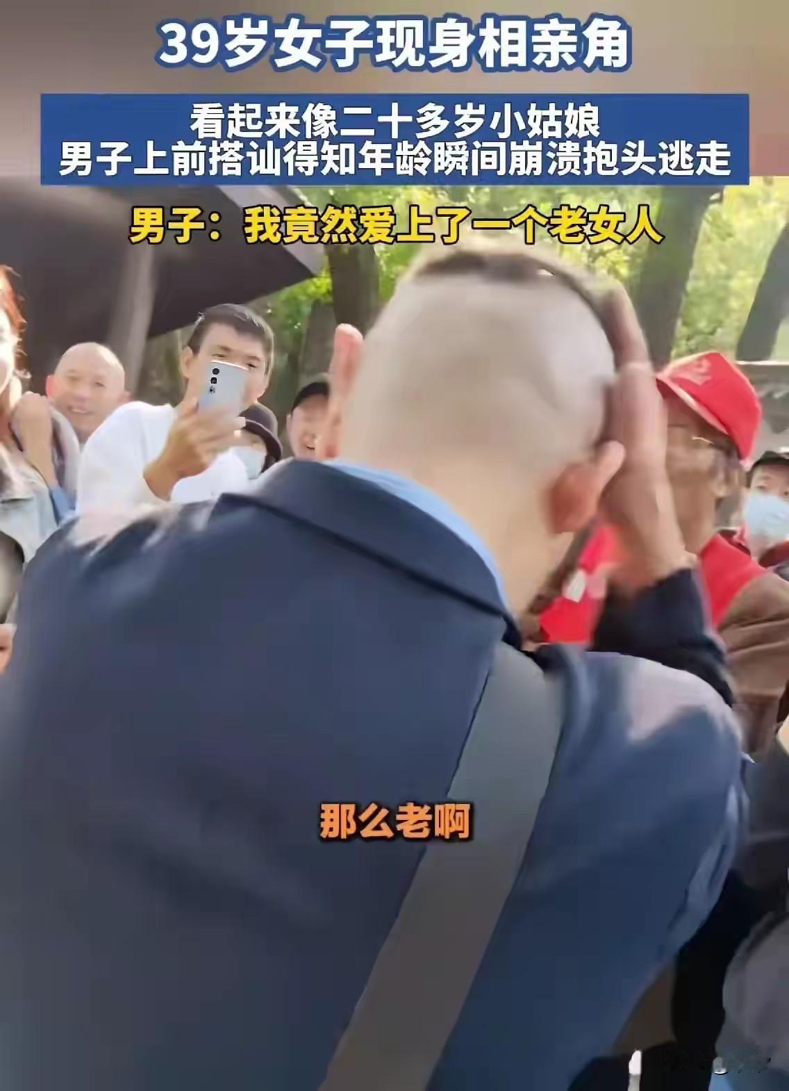 39岁的女子在相亲角大受欢迎, 一穿着西装的男子也看上了他, 两人聊的非常的火热, 男子是做生意的, 看谈吐也是有点儿小钱, 在得知对方年龄是39岁的时候, 开始嫌弃起来, 说对方保养的真好, 39岁和20岁小姑娘一样, 不过两人不合适, 女子很疑惑, 刚开始聊的不是很好吗? 为何一提年龄就打退堂鼓? 而且男子也40多了, 两人年龄刚刚好, 看到两人的交谈, 周围的男生也聚了过来, 弄清原因后大家都笑了, 原来是男子嫌弃女方年龄大, 女人30之后就走下坡路了, 男人40 一朵花, 男人40之后事业有成, 肯定想找一个20多岁的姑娘, 30多的女子已经不符合, 不管长得好不好看, 毕竟年龄就是底线, 大多数男人都是这么想的, 可女生却不这么认为, 她们觉得自己只要打扮的时尚, 保养的年轻漂亮, 就一定可以找到一个有钱人, 要是找不到就一直等下去, 毕竟奇货可居, 当爱情成了生意, 那幸福将会很难得到, 大家对于大龄相亲女的遭遇怎么看? 大龄姑娘相亲 男性相亲心理 大龄女子相亲 小伙相亲 相亲女 中年男人相亲
