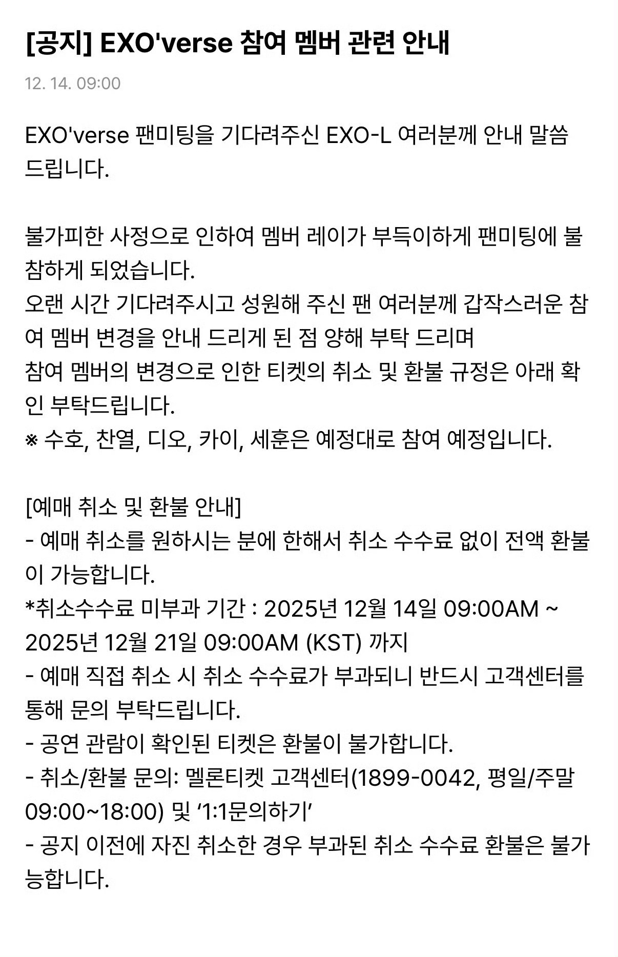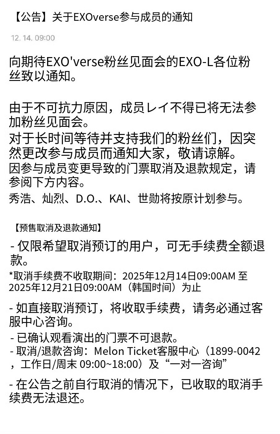 因不可抗力因素,张艺兴确定不参加EXO的粉丝见面会