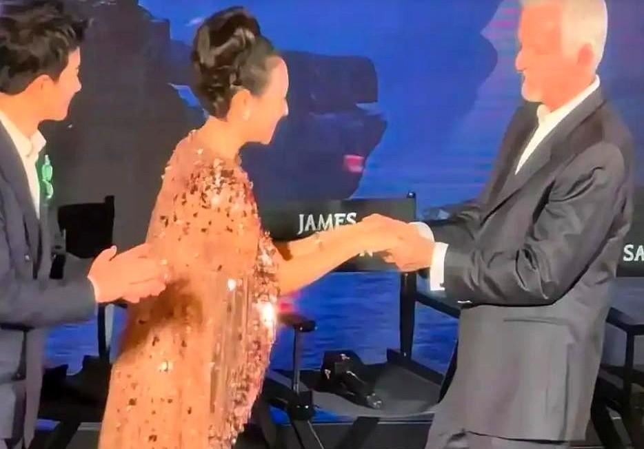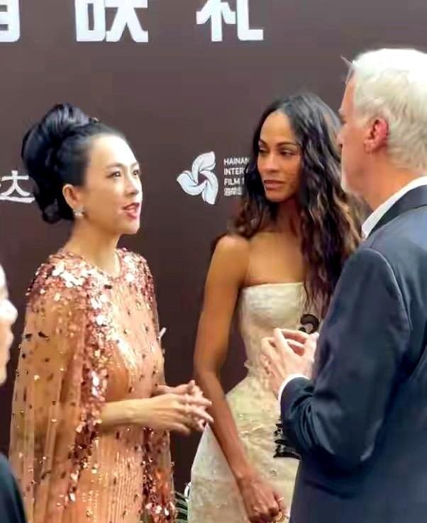 在威尼斯的镜头前,章子怡低头了。 不是躲闪,是凑上去。 凑近卡梅伦,肩膀前倾三十