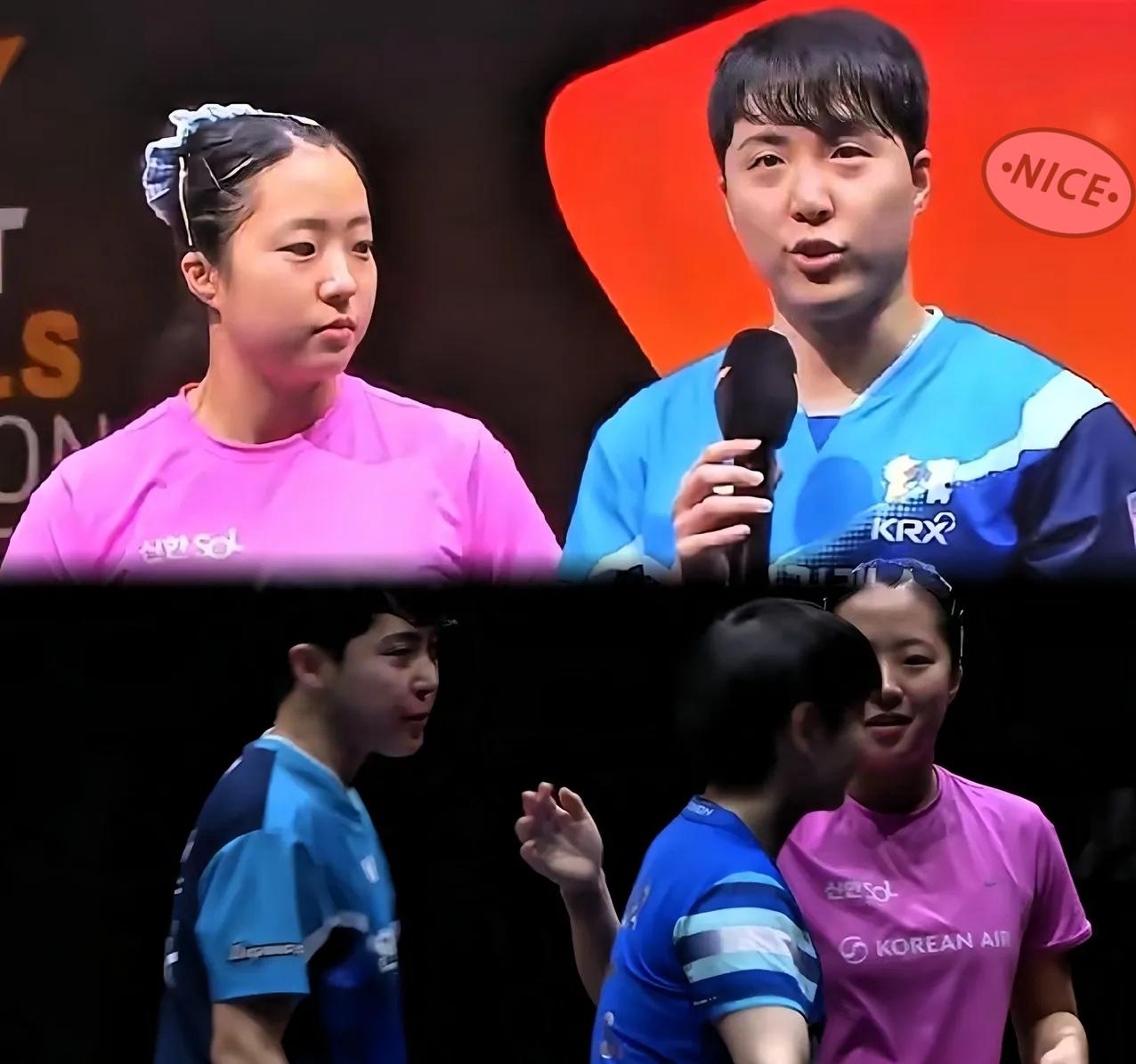 这对儿韩国选手比张本智和有教养。