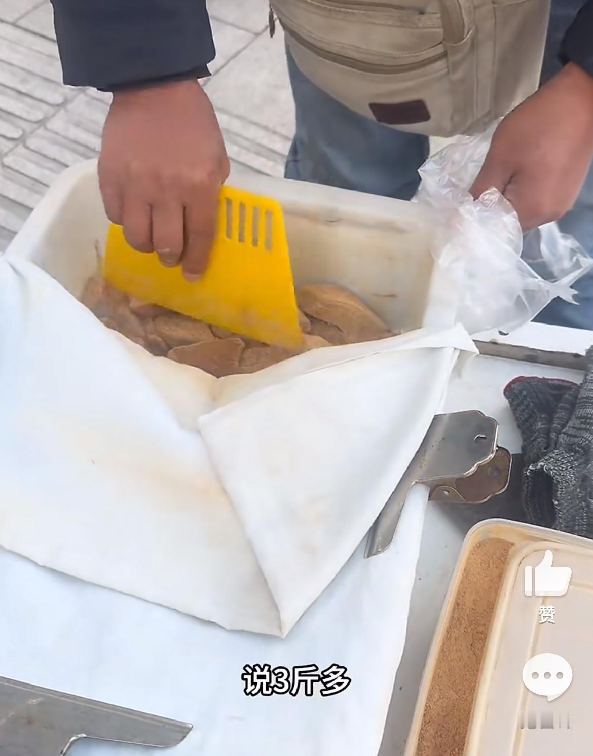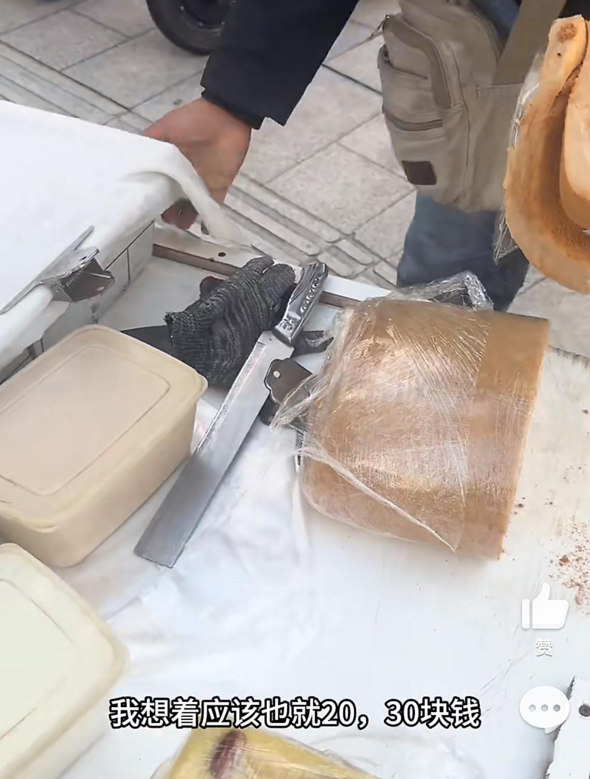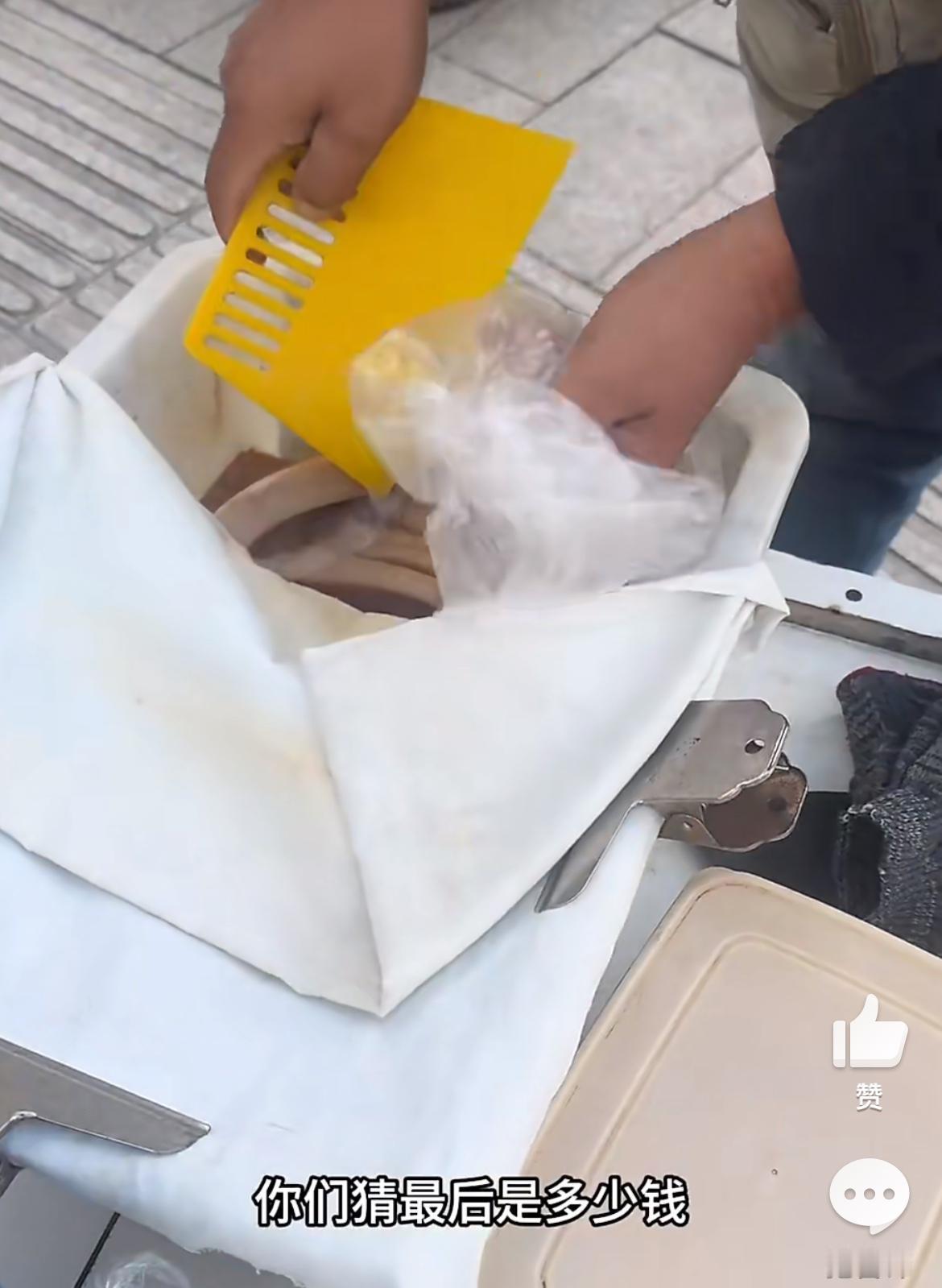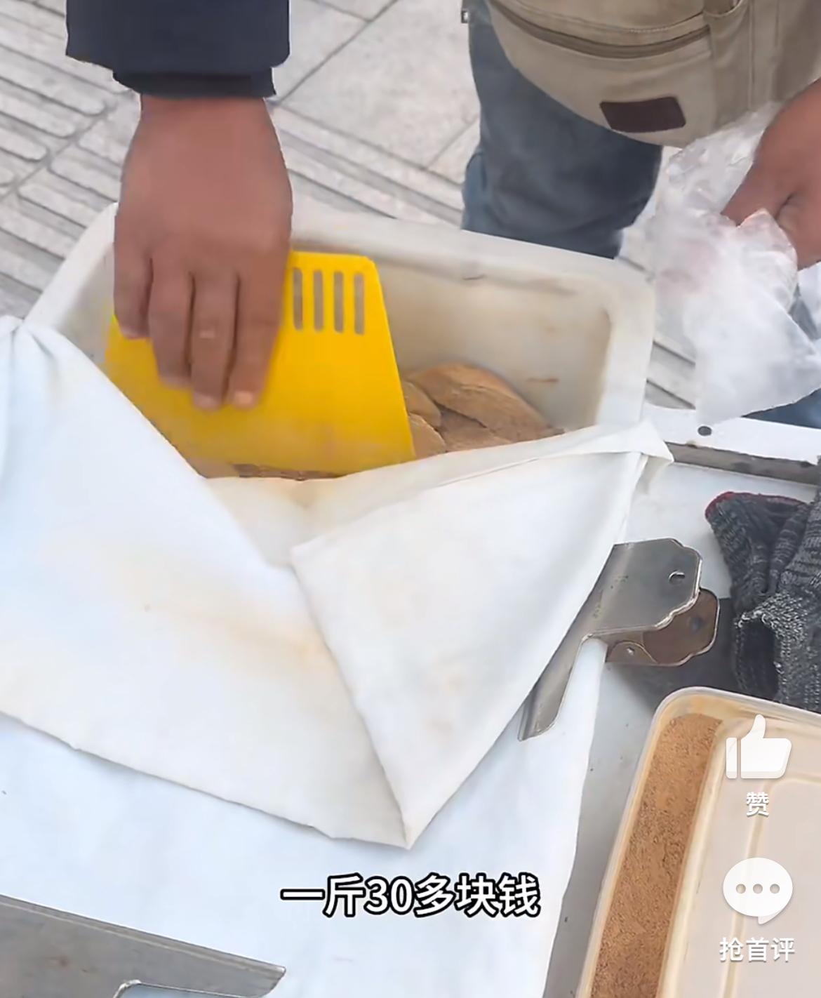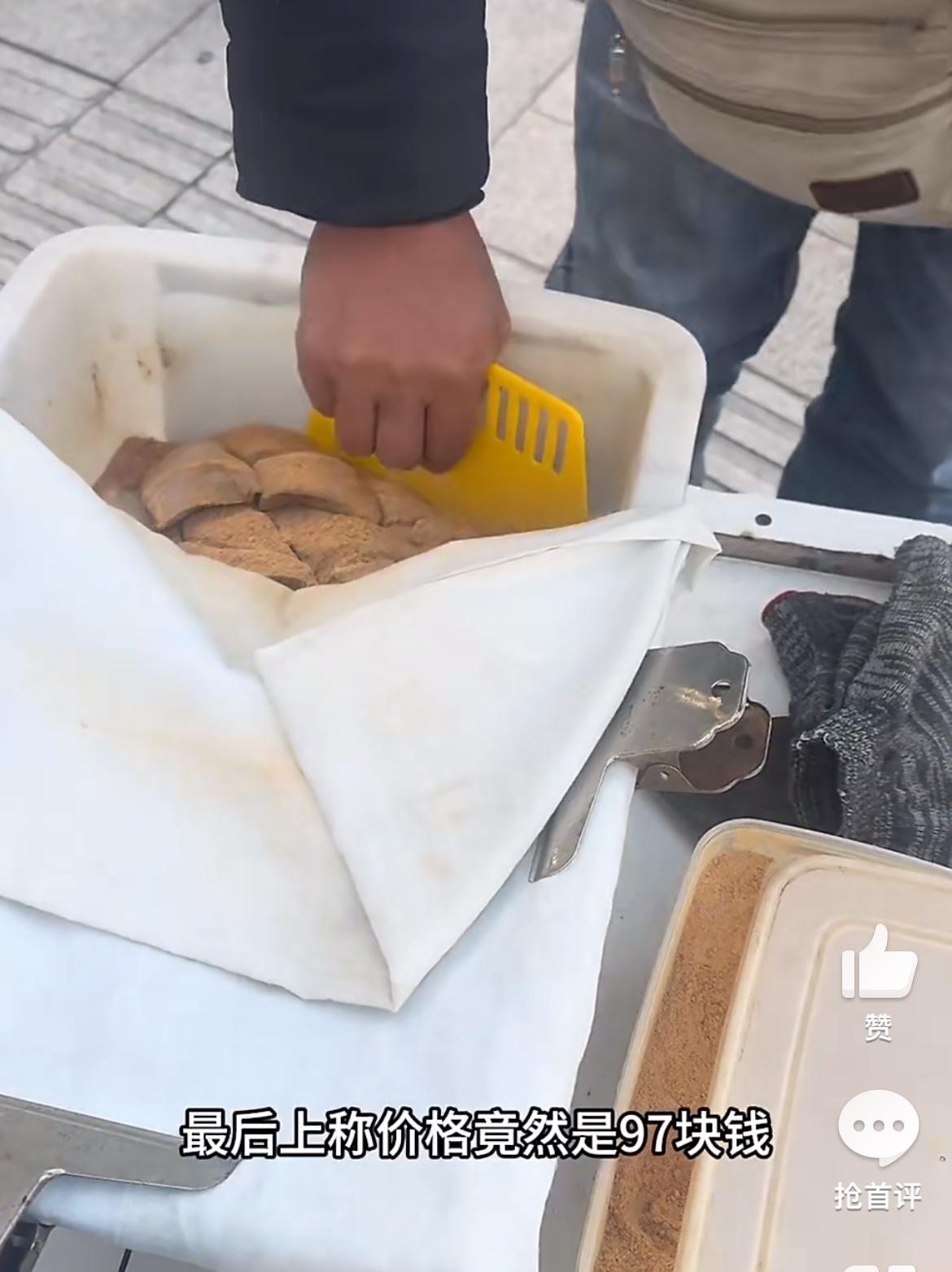 女子吐槽街边驴打滚以为20多,上称97,感觉被套路了。一问30来块钱一斤,小孩想吃,买一点尝尝吧,老板薄切了一块,感觉也没多重,放到调料里面滚一下,再一称,好家伙,老板报价97,简直惊掉下巴。女子抹不开面,只能打落牙齿往肚里吞,买单拿走,吃了一下,一点味道都没有,上大当。驴打滚家常做法 驴打滚儿