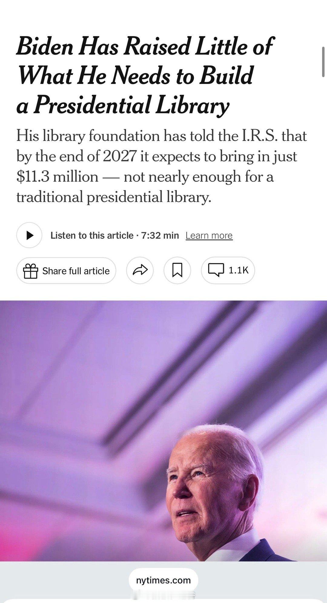 纽约时报:拜登总统图书馆基金筹不到钱卸任之后建造一个总统图书馆,是每个总统留下纪