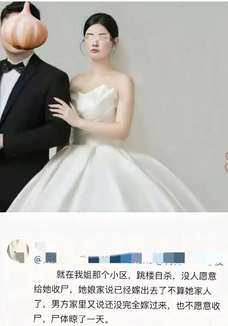 河南鲁山那位新婚当天跳楼的离世28岁历史女老师, 最让人心疼的, 不只是被逼婚11年的经历和无人收尸导致尸体被晾了一天的结局,还有结婚照片中的种种心酸细节。 从网上流传出的照片不难看出,尽管在拍摄结婚照片,可是她的内心并不愿意。 脸上没有丝毫的喜悦,神情冷淡的像陌生人一样,左手随意的打在丈夫的胳膊上,整个人都跟男方保持着身体和心理上的距离。 按理来说,拍摄结婚照时应该是小夫妻最开心的时刻,应该有溢出屏幕的喜悦,可从女老师的相片中,只有写在脸上的无奈与身体上的远离。 这些细节都证明出了一点,对于女老师来说,这场婚礼并不是爱情的水到渠成,更像是在现实压力下的无奈,女老师并不喜欢丈夫,只是被迫完成这场自己并不喜欢的婚礼。 再结合女老师生前最后一条朋友圈的内容,女老师说自己并不想结婚,而是在被父母以死相逼下,才选择草草的相亲、结婚,更让人瞠目结舌的是,女老师说自己抗争了十一年,也就是在17岁的时候就被父母催婚。 看了女老师的经历,打心眼里既心疼又惋惜,28岁的女老师,灿烂的人生刚刚开始,还有许多生活的美好等着去发现,还可以在讲台上教出一代又一代优秀的学生,最后却在逼婚的压力下草草地选择结束自己的生命,在生命的最后连仅剩的尊严都没能留住。 现在想想,催婚的意义到底是什么?是想像做任务一样,早早把女儿嫁出去自己就能完成任务,还是觉得女大当嫁,不早点结婚就是脸上没面子?这样的思想在2025年的今天,已经早就过时。 每个人都有每个人自己的想法,现在不想结婚,往往是在自己心里还没有遇到一个真心喜欢的人,没有达到自己心中可以结婚的条件,父母担心孩子的婚姻固然合理,但过度插手甚至是强行安排,最后的结果只能适得其反。 你怎么看?评论区说说吧。