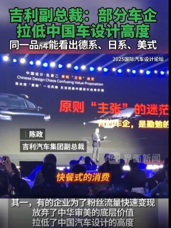 这是说的哪家中国造车品牌? 近日吉利副总公开说:中国某品牌深谙粉丝之道,利用快速消费造势,拉低了中国造车的水平和设计高度,能从该汽车品牌同时看出日系德系和美系,也就是混杂车型,啥样子都有。。。 是不是在说小米?