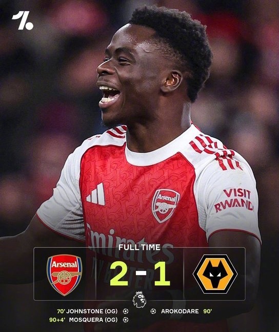 狼队进了三个球惨败,阿森纳一个没进却赢了?英超第16轮,阿森纳2-1狼队,全场总共3进球,全是狼队打进的,萨卡两次助对手乌龙!阿森纳16脚射门1球未进,狼队3脚射门打进3球,阿森纳凭借狼队进球艰难战胜狼队,多么充满戏剧性的比赛啊!积分榜方面,阿森纳36分先赛五分领跑,狼队各赛事十连败2分垫底。阿森纳