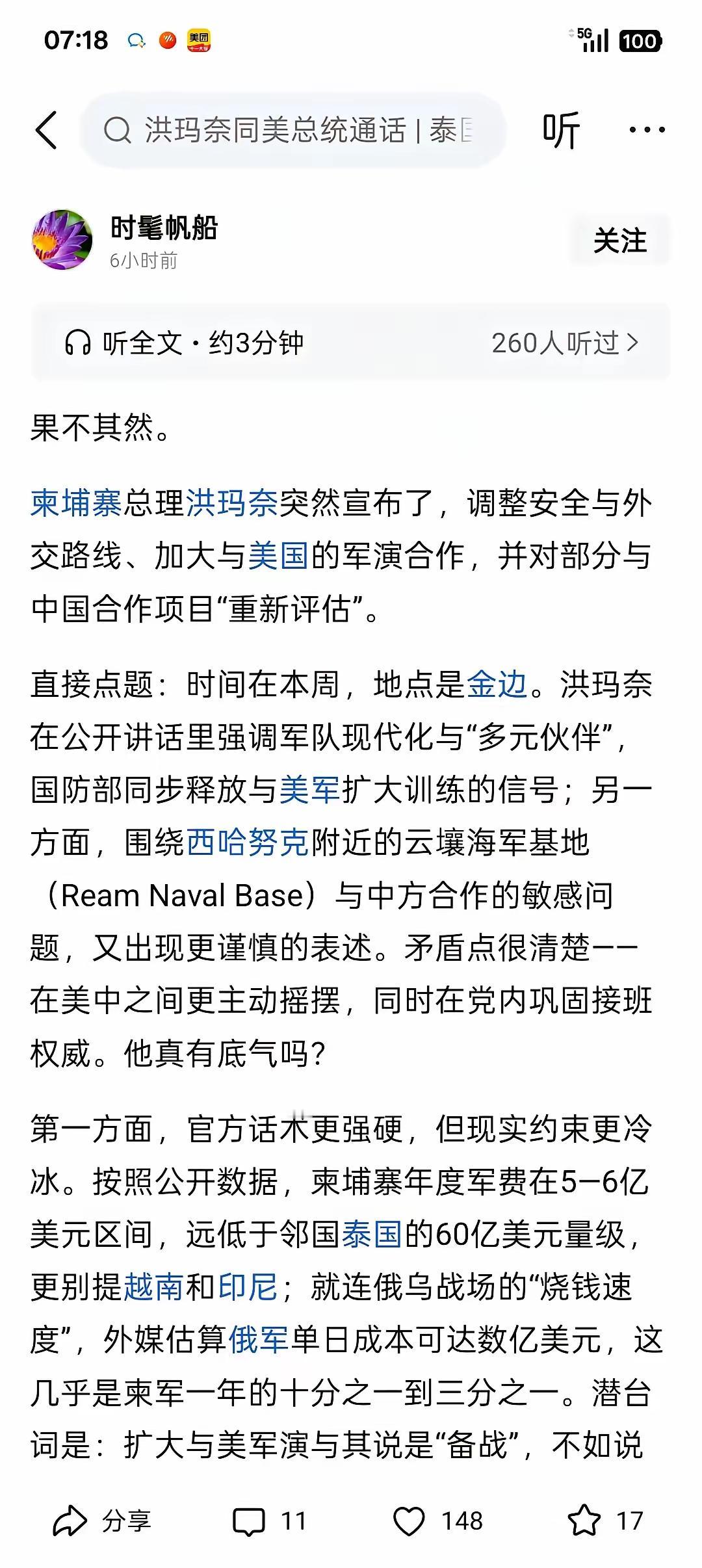 洪玛奈一边加强对美合作, 一边要重新评估中柬合作项目, 这操作简直把 “小国随风倒”玩明白了! 以前台湾搞“金钱外交”,撒钱拉小国建交的教训还在眼前,这些只认利益的小国,哪有什么长久信誉可言。洪森家族执政时就争议不断,如今洪玛奈换了赛道,为了美国的援助和关税豁免,转头就调整对华姿态,本质就是利益驱使。 中国走向强国,早该跳出“花钱买外交”的误区。对这种摇摆不定的势力,没必要过度投入,保持底线和实力就够了——你愿意合作就共赢,想转向也拦不住,毕竟真朋友不会因利益轻易变脸。 你觉得对待这类“随风倒”的小国,该坚守原则还是灵活应对?来评论区聊聊!