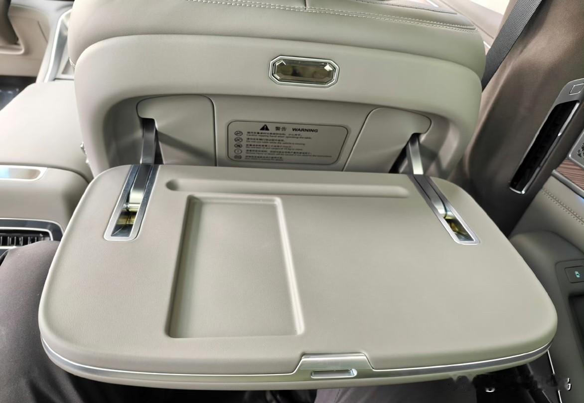 【车载小桌板需要手机槽吗?】 腾势n9为代表,有手机槽,有笔槽 好处: 手机可以找到特定位置存放,行车使用时,非强烈加减速或转弯,手机可以被固定在小桌板上 缺点: 不平整,无论放杂物还是放电脑还是写东西都会出现平整区域使用面积不足的问题