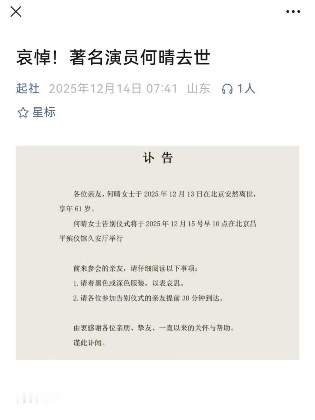 演员何晴去世…唯一演遍四大名著的女演员💧