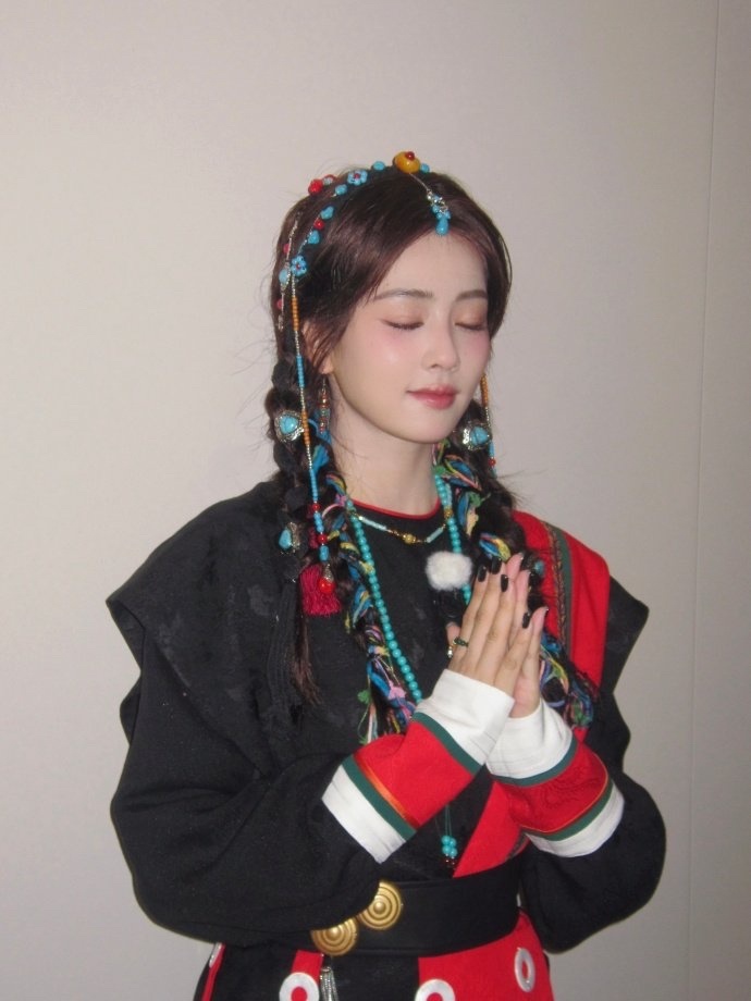 白鹿体验了珞巴族民族服饰,好漂亮~