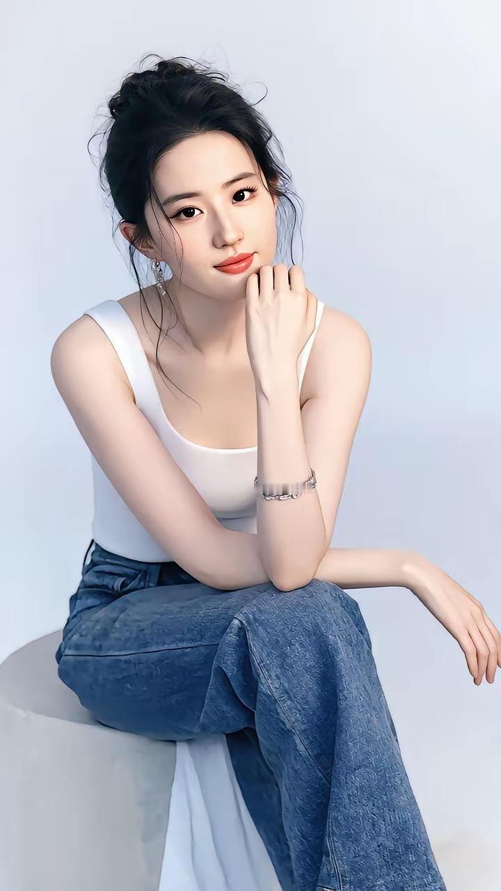 清新自然,少女感十足,简约白T恤搭配牛仔裤,轻松自在。