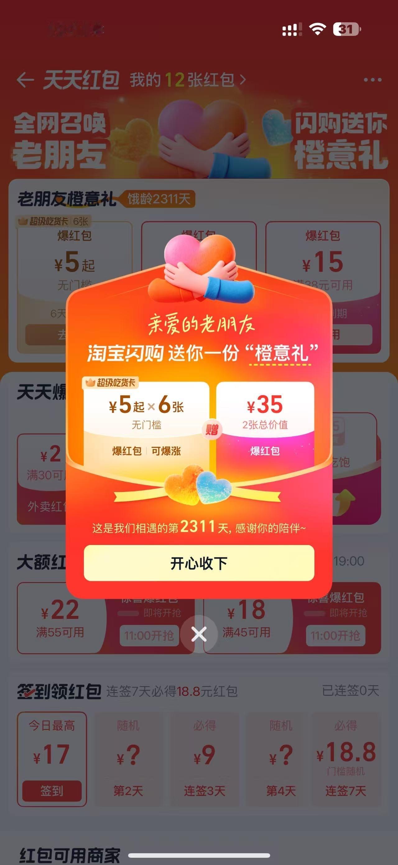 李现喊你上淘宝闪购领老朋友福利 以前觉得账号用久了没啥,现在发现是个宝!李现喊你来“挖宝”,12.12-12.18上淘宝闪购搜【老朋友】,就能发现你的账号价值,注册越久红包越大,至高可领7张免单卡。快去看看你的饿龄是不是个“富矿”!淘宝闪购超级周末淘宝闪购全网寻老友