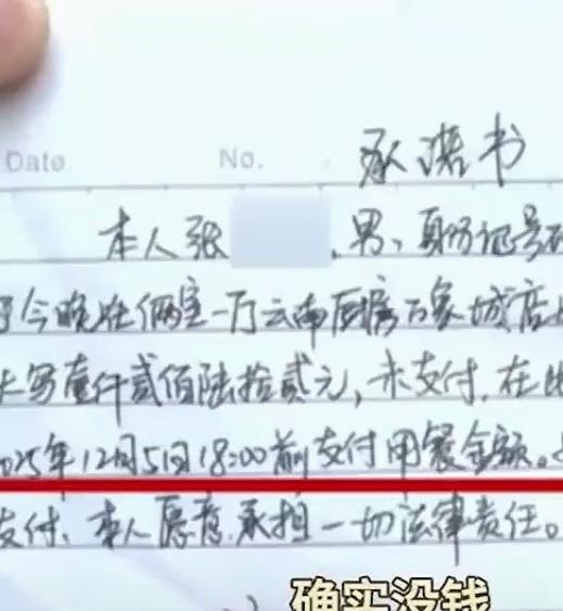 10人聚餐9人跑 剩下一人签承诺 在重庆某区一餐馆里,10名男子在聚餐酒足饭饱的阶段,其中九人全部开溜,只剩下一位可怜张先生。 餐馆老板要求买单,张先生或许真的没钱,又或许不想买单做冤大头,反正他在警察的敦促下签了一份承诺书承诺,承诺第2天来付款。 但5天过去了,张先生也没来付款,餐厅老板将此账单起诉。 当今的人都怎么了?为一顿饭跑断腿!又为一顿饭舍掉自尊和脸面! 咱吃不起能不能不吃? 这样的事情惊动人民警察来处理,作为成年人是否应该呢? 评论区里都炸了。但无论怎样, 每个人活得都很艰难, 可能买不起一餐大单,也都很无助,这1000多元有可能是一家整月的生活费! 但我只想说,没钱咱能不能不去赴宴,不接受邀约呢?