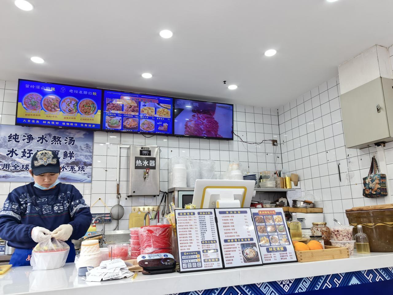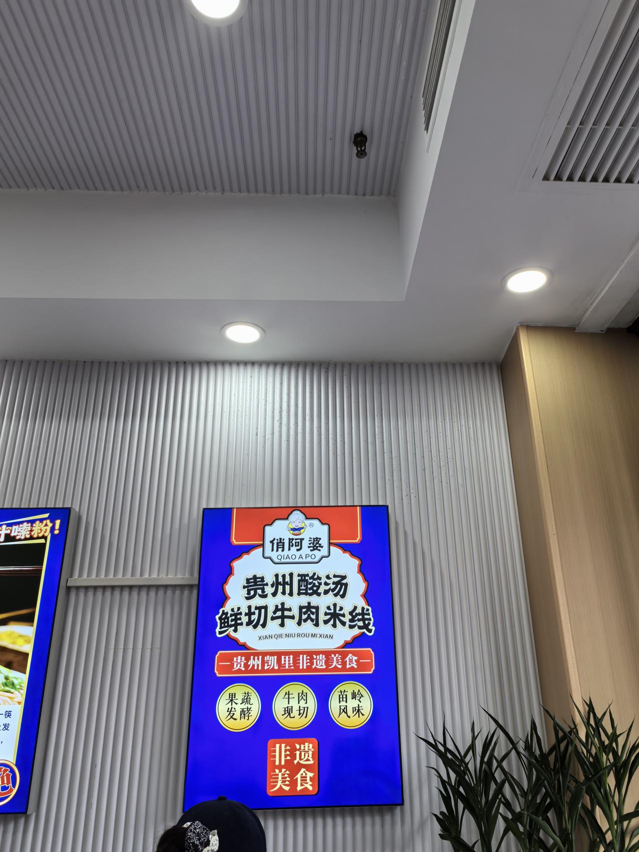 又来推荐美食喽 今日早上路过襄州民发广场星街,被一家贵州凯里非遗美食宣传给吸引了,忍不住走进店里过早。 这是一家名为“俏阿婆贵州酸汤鲜切牛肉米线店”。店面不大,五张桌子,店员两名四十岁左右的女性担任主厨和收银。主厨帽子、口罩、围巾、手套穿戴整齐,整个店铺给人干净、卫生、清爽的视觉效果。 店里宣传片贴的80斤大骨熬汤,纯净水做原材料,走近一看,确实一口大锅熬着牛大骨,纯净水烫面和粉,果蔬发酵成酸汤打底,再加上案板上的牛肉是鲜切的,头上的电视正放着贵州酸汤非遗制作过程。 收银店长介绍过早的五种酸汤口味,分别是毛辣果酸汤、大骨原汤、番茄酸汤、剁椒酸汤和老坛酸汤,并一一说明了各种口味的辣的程度。 伙计点了毛辣果牛肉鲜切酸汤粉,我点了牛肉粒炸酱拌粉,门口大桌上有香葱、芹菜碎、酥豌豆、泡萝卜片供顾客添加,餐巾纸都被店家用贵州的刺绣挂袋装着挂在门上便于顾客抽取,真贴心啊。 美食做好,主厨出餐让顾客自己端,自己选择需不需要放香葱等调料。闻了一下,真的是鲜香味加发酵的酸香味浓浓的,大清早让人唤醒味蕾,食欲大增。尝了一口,哎呀妈呀,我使劲过大,酸辣味呛到了嗓子眼,赶紧出门咳嗽了一会才好受点。 不得不说,两种粉味道特别,好吃的很,盛粉的碗也很好看,民族特色别具一格。价钱嘛一碗15元一碗13元,偶尔吃基本能接受,就是没有喝的,就像我刚才呛到了,要是桌子上有一壶开水就好了。不过我想,如果有开水,那店里卖的醪糟米酒就没有市场了。 期待这家店能被顾客接受,旁边就是幼儿园,应该有人气,一早上孩子和孩子家长光顾的多,主打食品卫生健康安全,应该会很吸引人。有友友喜欢这个果蔬发酵酸汤味道的吗?欢迎来品尝。凯里的美食店 襄州美食探店 凯里美食店 苗记鲜手工米线 凯里二龙面馆 凯里美食探店