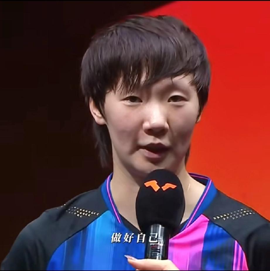 王曼昱这姑娘也太低调了! 昨天在香港总决赛上,结束了与陈熠的比赛,在采访环节我又被鳗鱼的回答给破防了,当主持人问道,怎么来赢了这场决赛的终极对决呢 鳗鱼果然现在的每次采访都让我刮目相看,她很干脆利落的回答了主持人的回答说道,还是一分一分的打,做好自己,全力以赴吧!鼓掌 为鳗鱼的回答打100分,就这简简单单的几句话,也是她内心最真实的想法,这姑娘很低调,从不给自己定目标,而是一切顺其自然,做好自己,这次在身体有伤病的情况下,又打进女单的决赛了,弄不好在香港总决赛上也要卫冕呀!期待晚间与蒯曼的这场女单争夺赛吧!