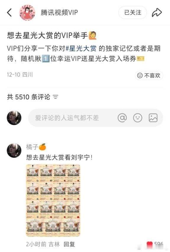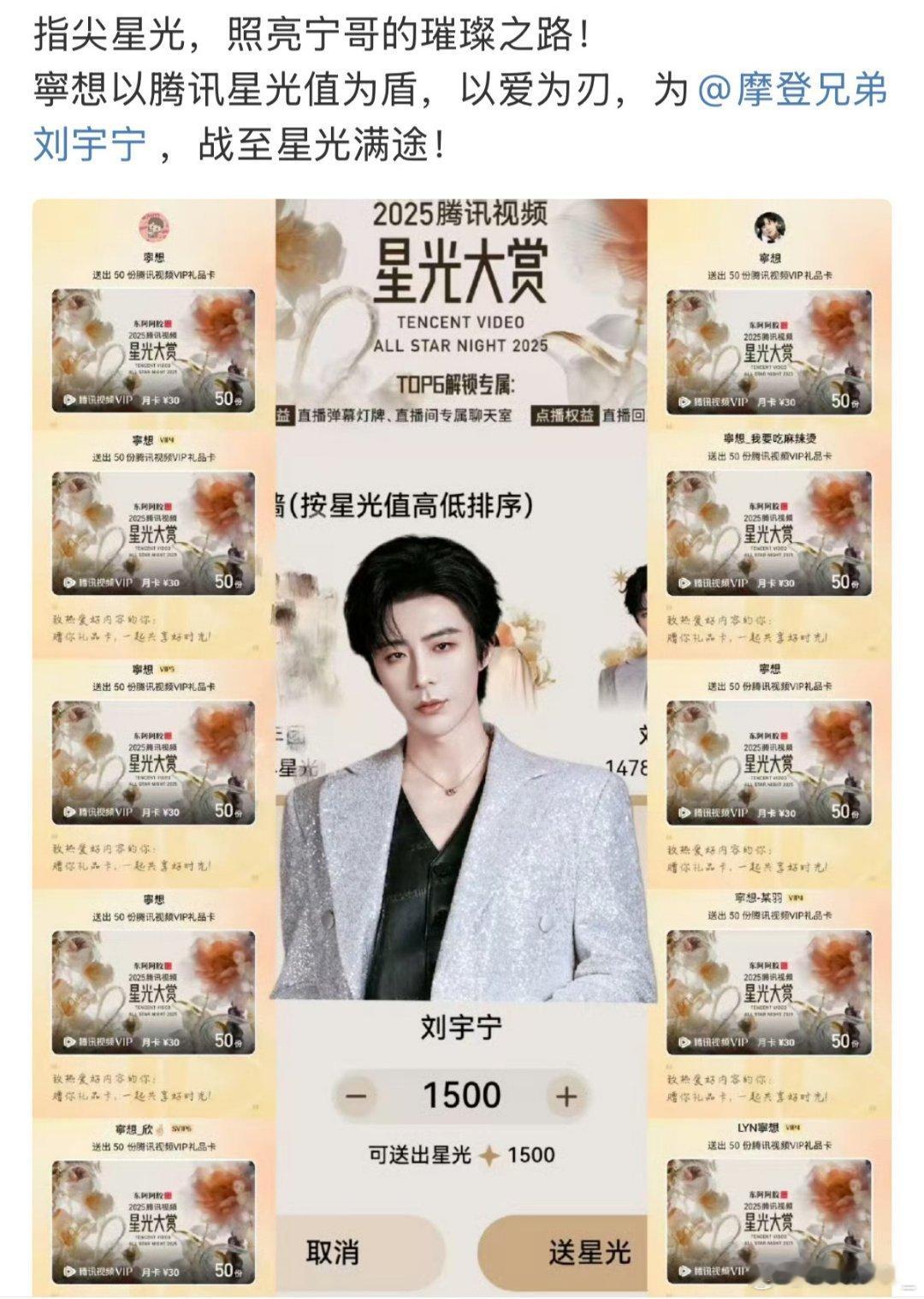 腾讯视频星光大赏投票——星光大赏,像刘宇宁家这种,自掏腰包冲会员,打投量级堪比播剧的态势,能多给几张票吗?(折腰千万级包场的战绩也不要忘了吆)