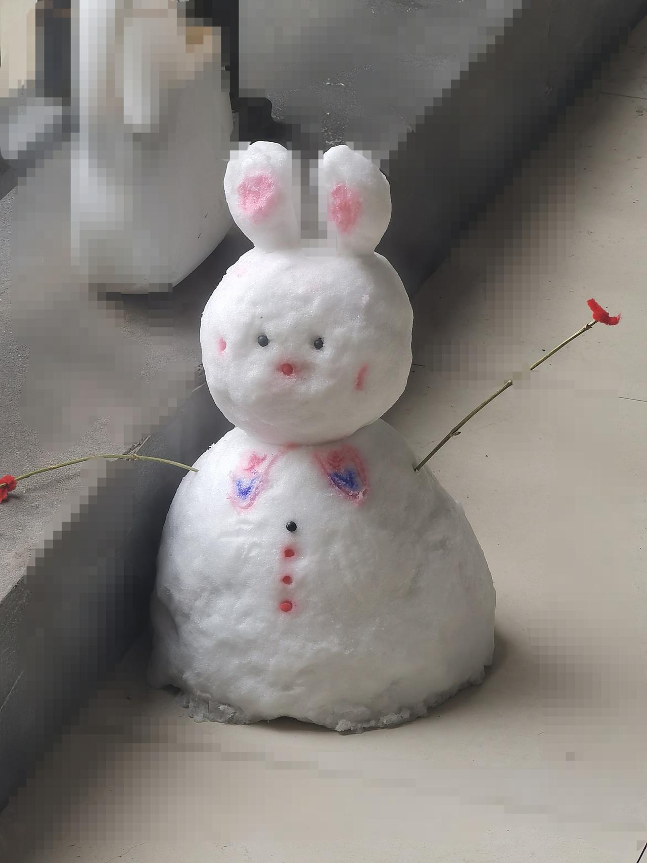 这里下雪了 邻居堆的雪娃娃