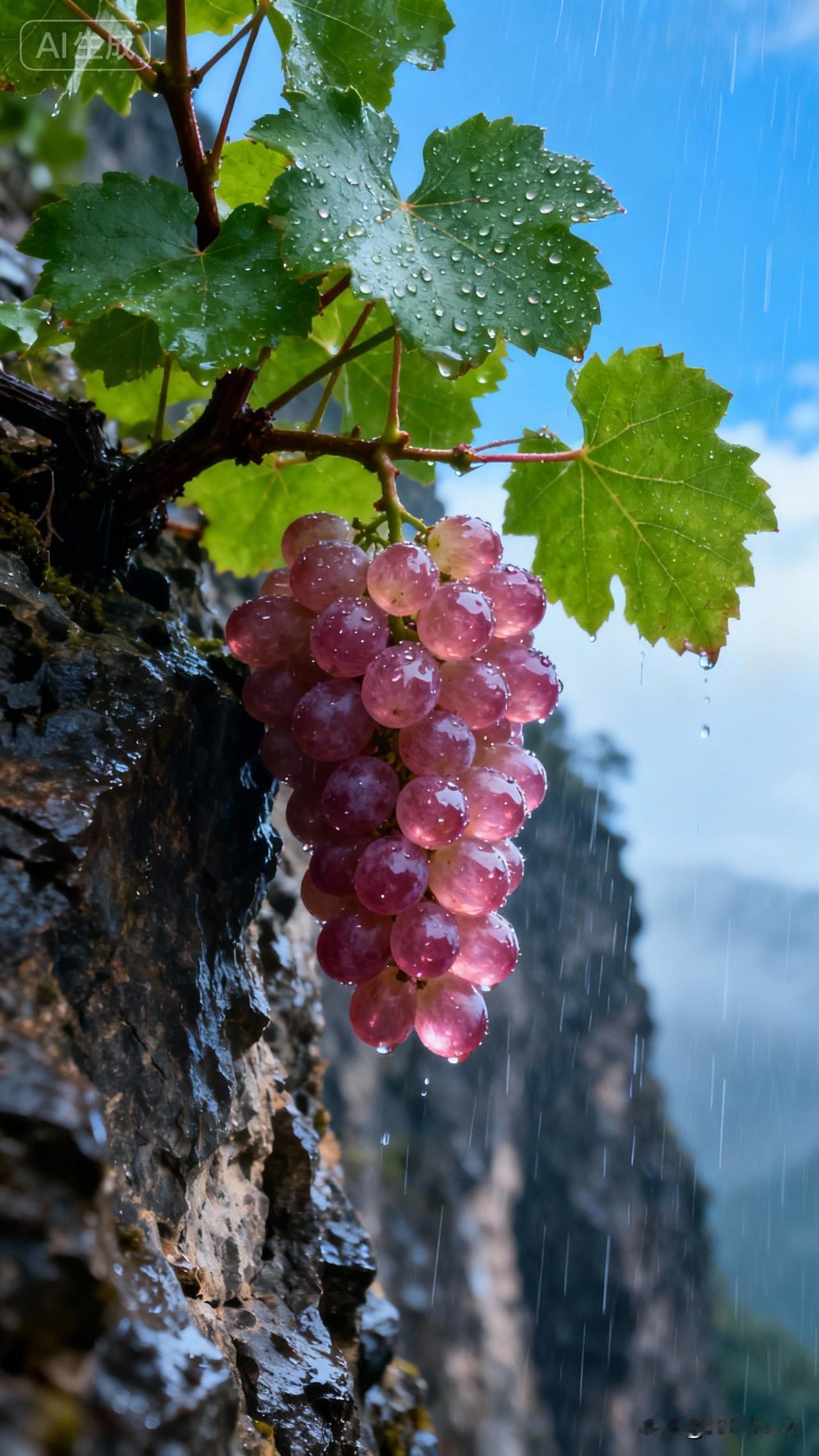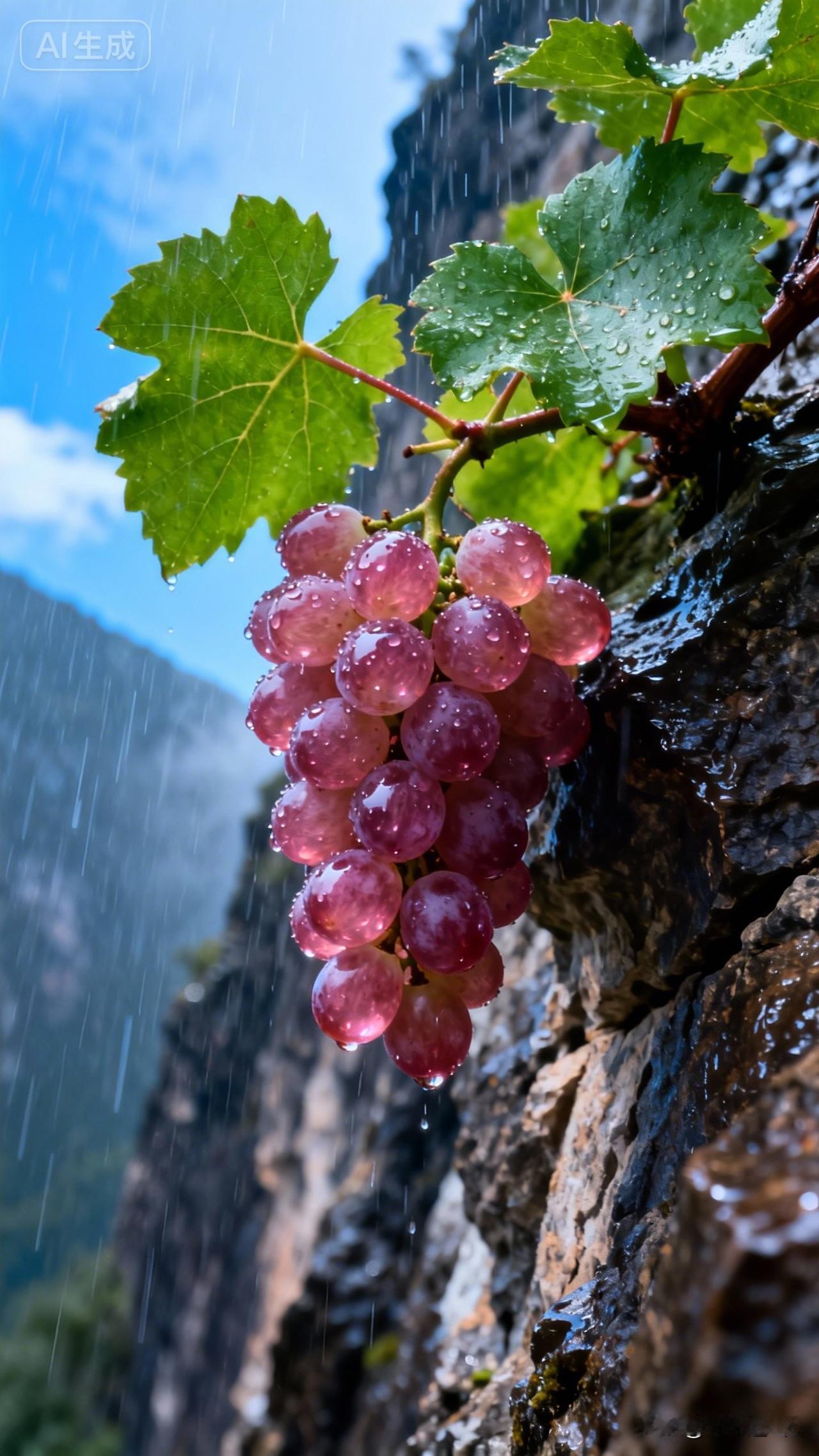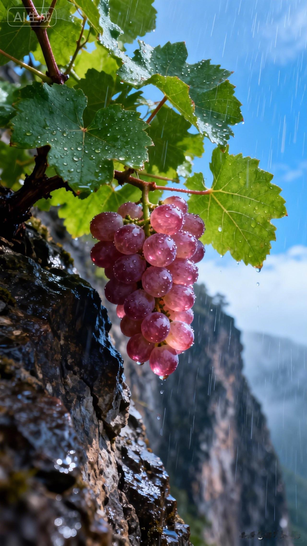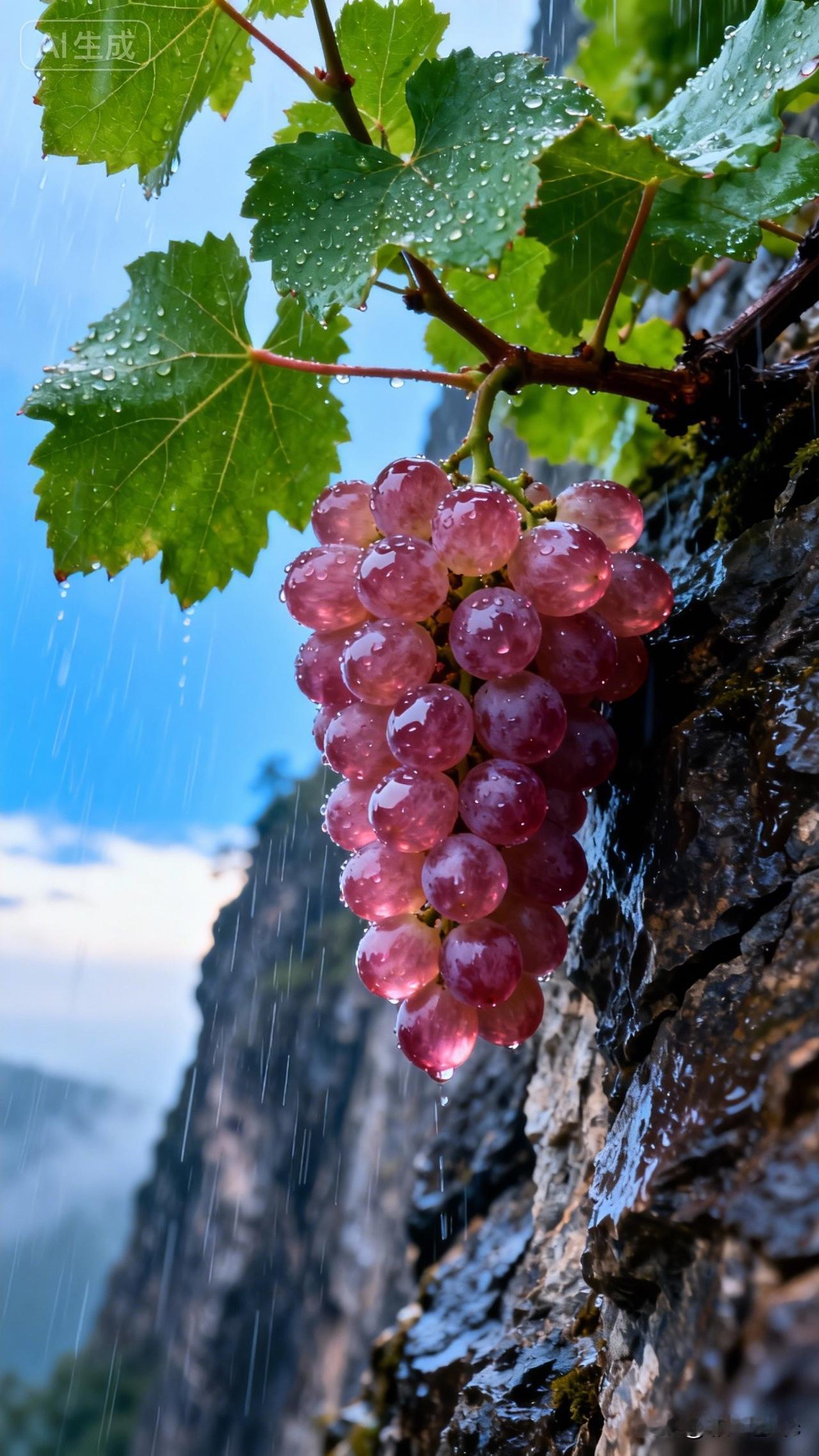 雨中葡萄,晶莹剔透,大自然的美妙馈赠!绿叶水果葡萄奇异的葡萄五彩斑斓的葡萄