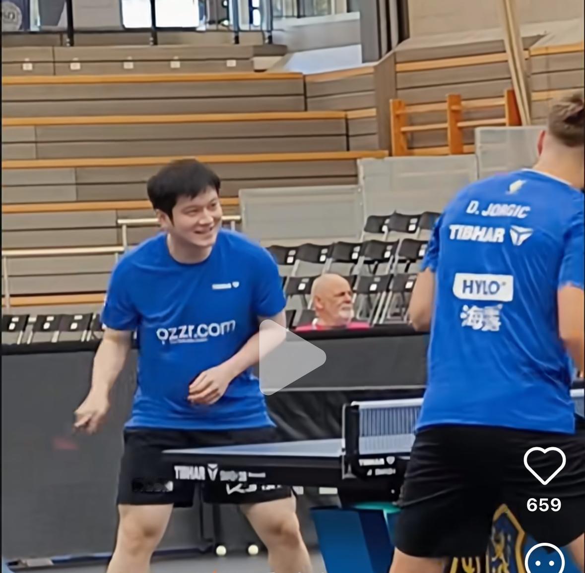 12月14日樊振东赛前训练 今天晚上,北京时间21:00 当地时间下午两点, 樊振东将在萨尔布吕肯主场 出战,迎战奥克森豪森俱乐部! 这是樊振东今年12月份的德甲首秀, 今晚一起关注樊振东的比赛吧, 赛前训练的樊振东很开心, 这次樊振东去德国, 一点路透也没有, 樊振东的粉丝把东哥 保护的好好👍…… 今晚樊振东比赛加油👏!