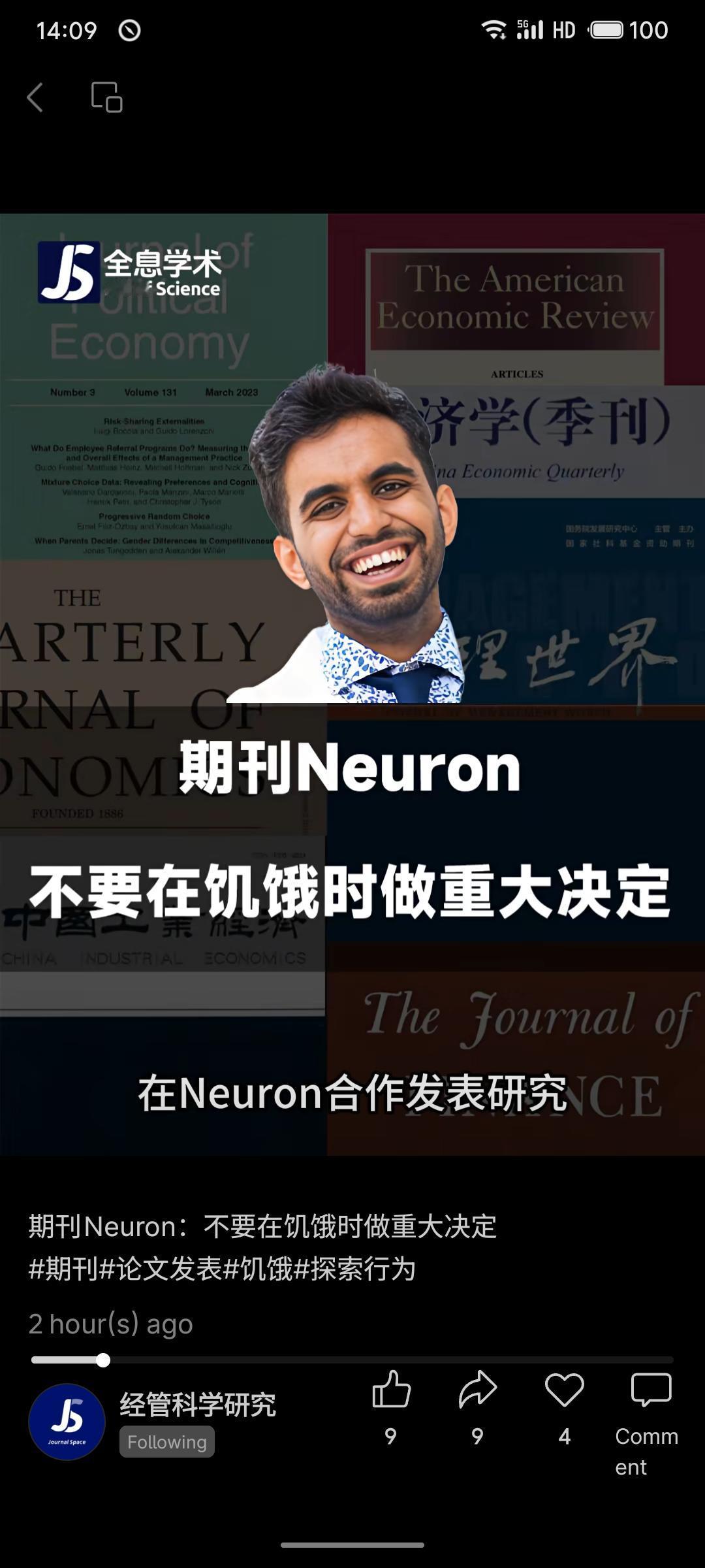 研究发现,饥饿会通过激活下丘脑AgRP神经元,抑制尾侧纹状体的多巴胺信号,从而增强探索行为。这解释了饥饿如何驱动适应性探索,同时也提示饥饿可能影响决策稳定性,因此建议避免在饥饿时做重大决定。
