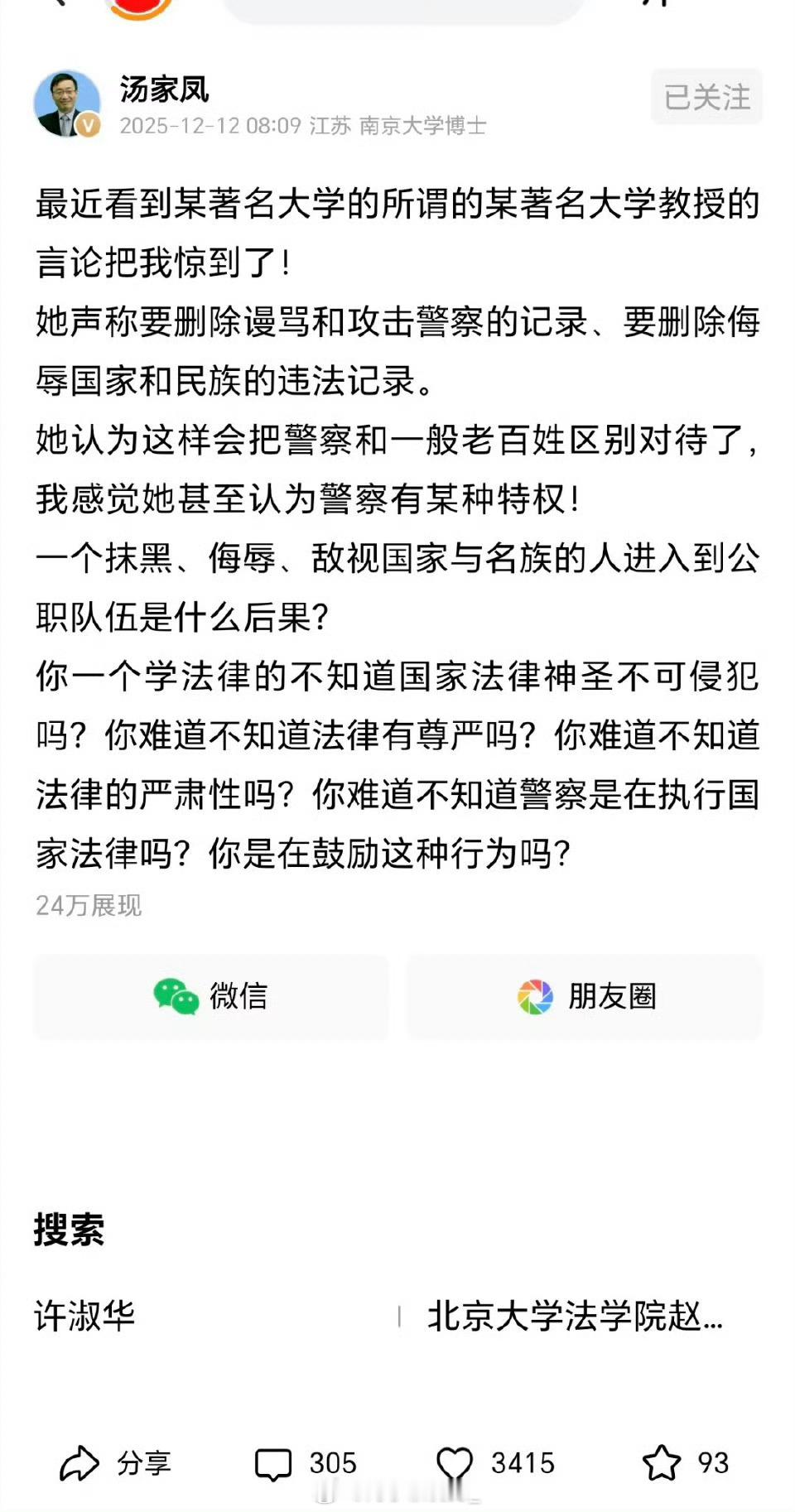 汤家凤继续怼某大学某教授,虽然没有点名,但大家都知道是谁!