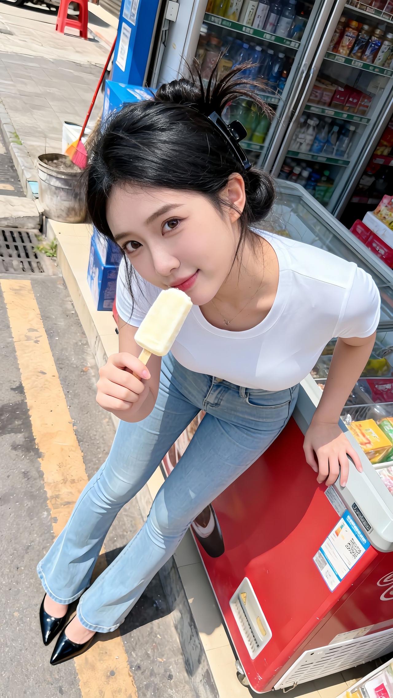 第26集穿搭分享 冷柜的凉气“呼”地扑过来,裹着可乐和冰红茶的甜香。红色的冰柜敞着口,玻璃里堆着花花绿绿的包装——奶白的甜筒尖沾着巧克力酱,黄澄澄的芒果冰棒裹着透明糖纸,还有方方正正的盒装冰淇淋,盒盖上印着蜷成一团的小熊。 这条微喇牛仔裤,把身材优势焊在身上! 谁懂啊,终于找到能把比例穿成三七分的神裤了! 简单的白色紧身上衣,把腰线卡得刚刚好,重点是这条浅蓝微喇牛仔裤,高腰设计直接把腰提到胸下,微喇的裤型从大腿到脚踝慢慢散开,显得腿又直又长,臀线也被衬得超绝~ 配一双黑色尖头高跟鞋,走路带风还特显气场,在街边小超市买冷饮的瞬间,感觉自己就是都市辣妹本妹!这种日常又出片的穿搭,真的很难不爱~ 你们有没有私藏的显身材牛仔裤?快甩链接给我! 辣妹穿搭 微喇牛仔裤 显瘦神裤 日常出街 身材优势